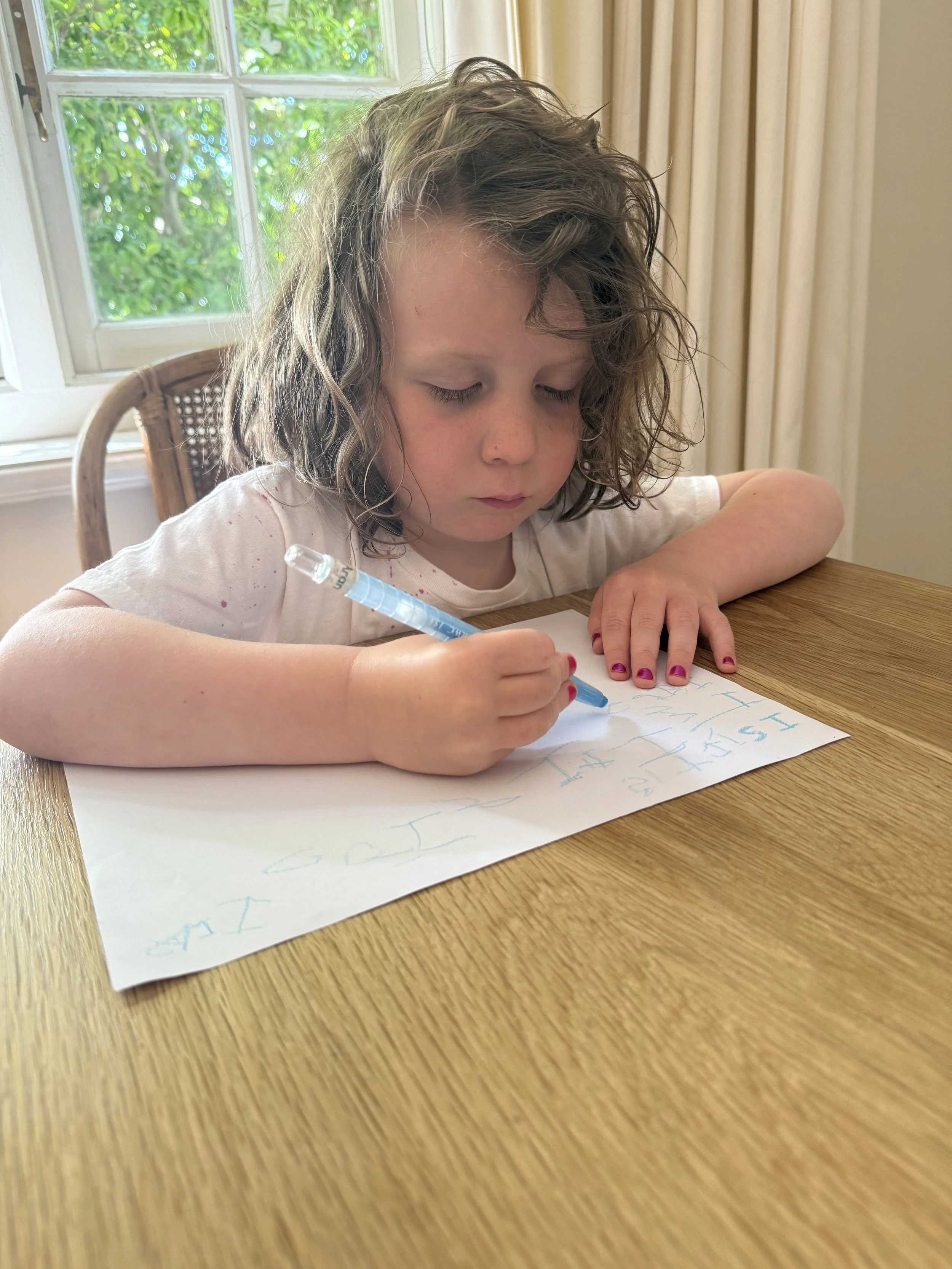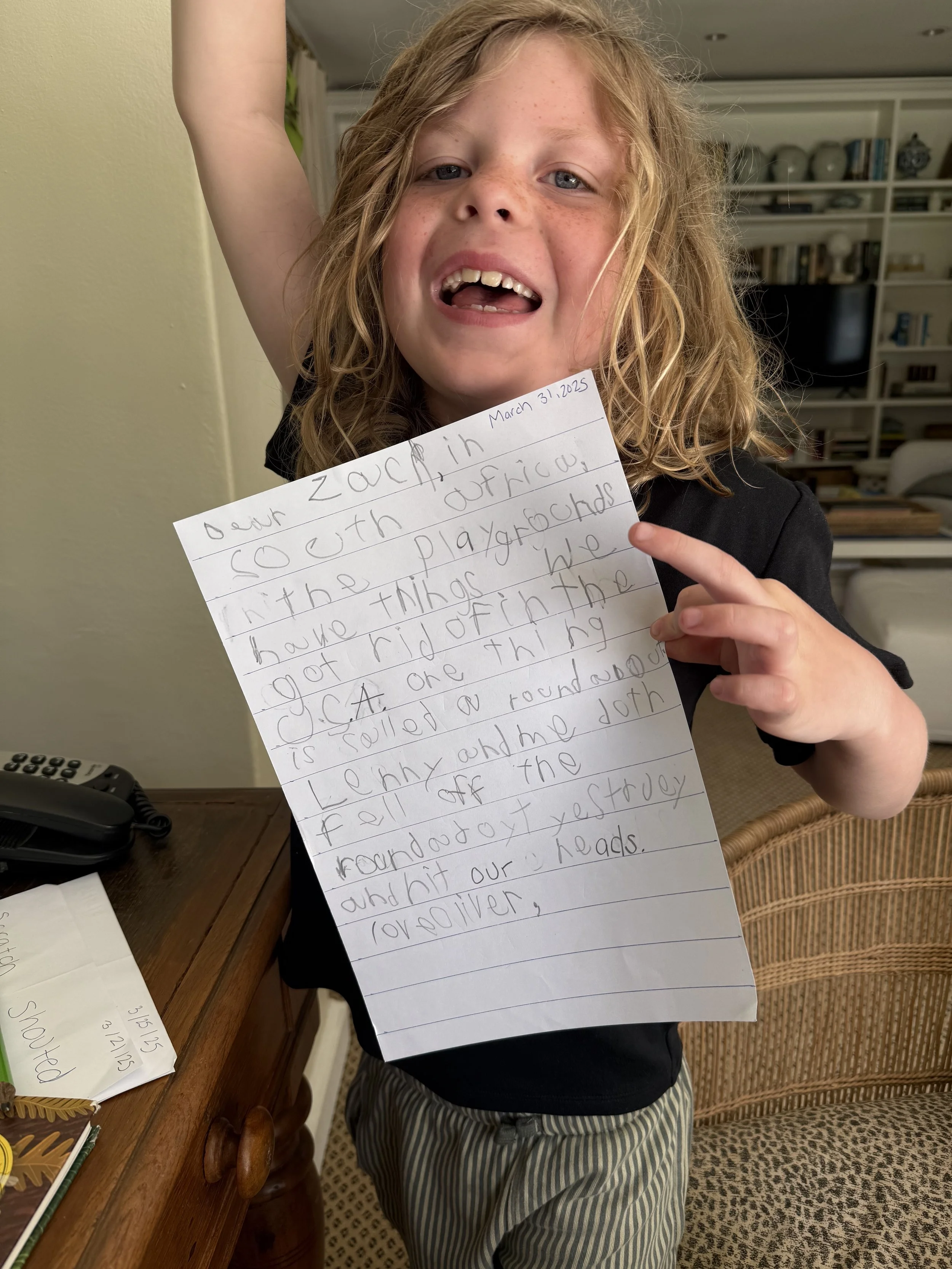 Lenny practiced writing his letters and Ollie wrote to his cousin Zach.