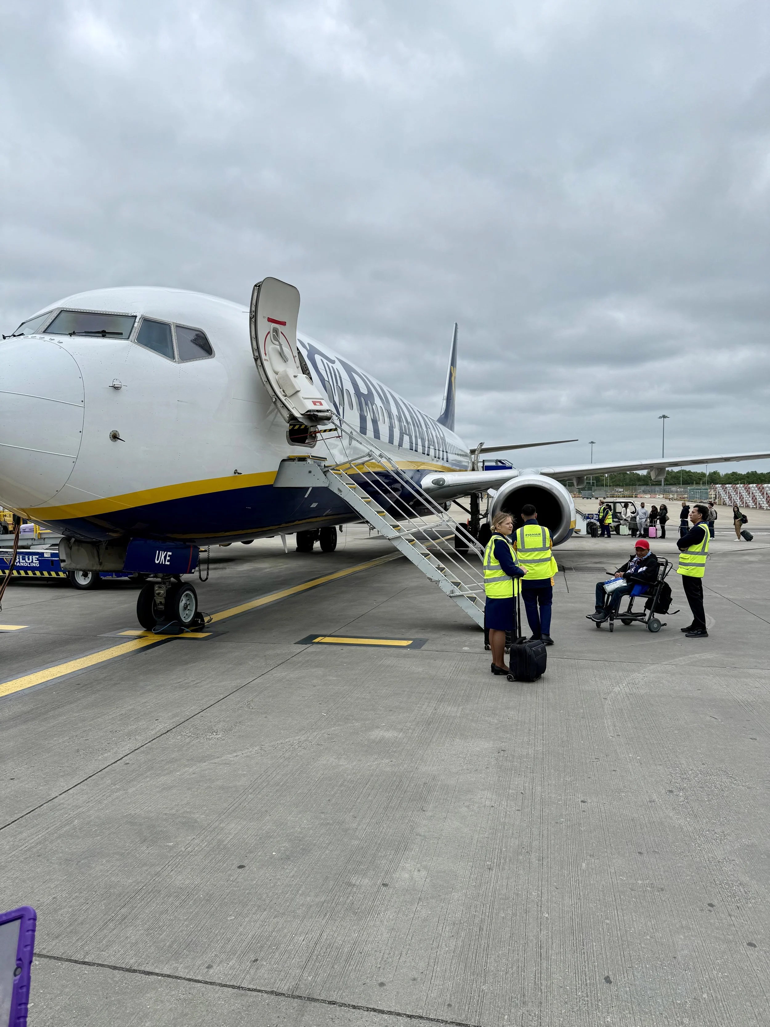 Without fully knowing what is was or meant, Kyle booked “Fast Track” for our tickets from London to Marrakesh. It turned out to be similar to Clear or TSA PreCheck and we thankfully went to the front of the massive security line. It was a good move because it seemed like ~50% of passengers had bags flagged for something including most of ours. After a brief hold up and bag search, all of our stuff was deemed fine and we were on our way. By the time we grabbed lunch and snacks, we were then assigned a gate and on the move again. We flew RyanAir to Morocco and given that all of our luggage is carry-on (including some questionably sized backpacks as personal items), we wanted to line up early to ensure there was space in the overhead bins for our bags.