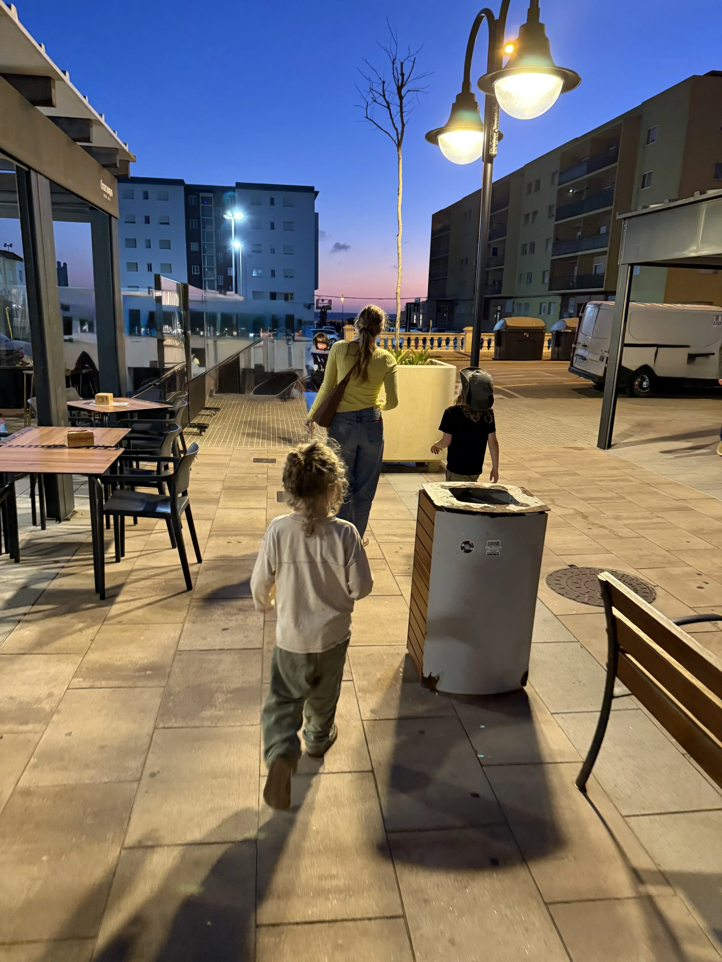 We found a restaurant down the road with a park outside and enjoyed letting the boys run while we ordered food and a glass of wine. There was a large window next to our table that Lenny loved entering and exiting the restaurant through. The boys came in to eat and play a game of Uno. Ollie crushed some ham croquettes and a few mussels while Lenny subsisted mostly on bread. Then we headed to a nearby gelato shop for desert where Lenny’s lack of hunger at dinner disappeared.