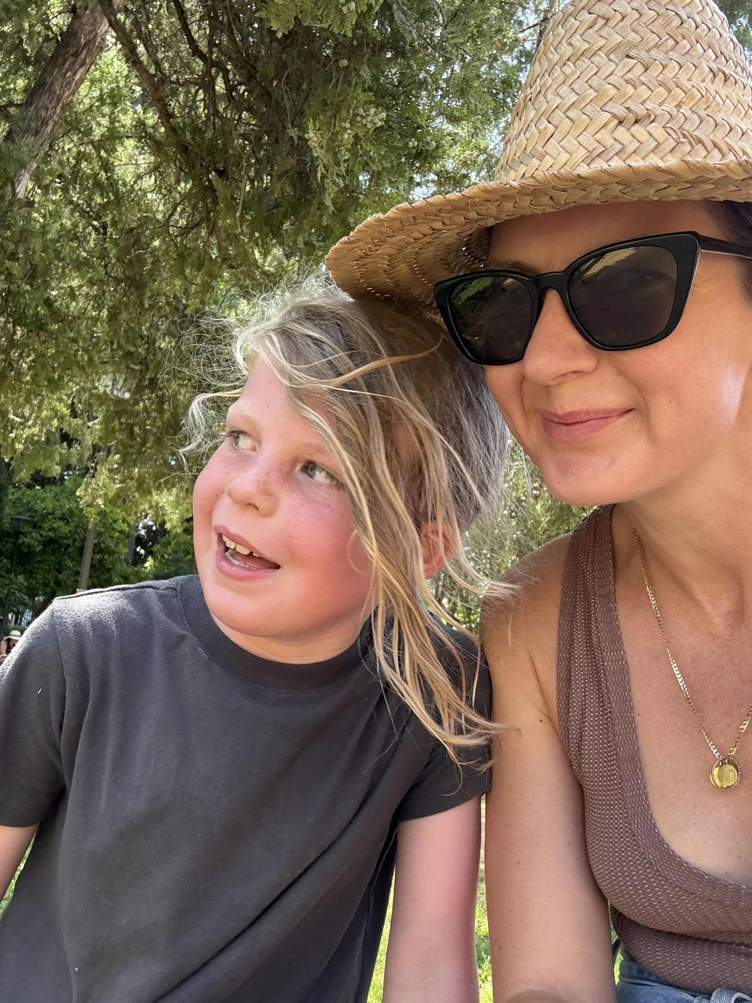 We found a small playground but it was fully in the sun and had metal beams that were terribly hot. Instead, we played a few games of Uno in the shade. While playing, Len kept running back and forth to the park fountain where he would full up his hat with water and dump it on his head, “This is so cool you have to try it!”