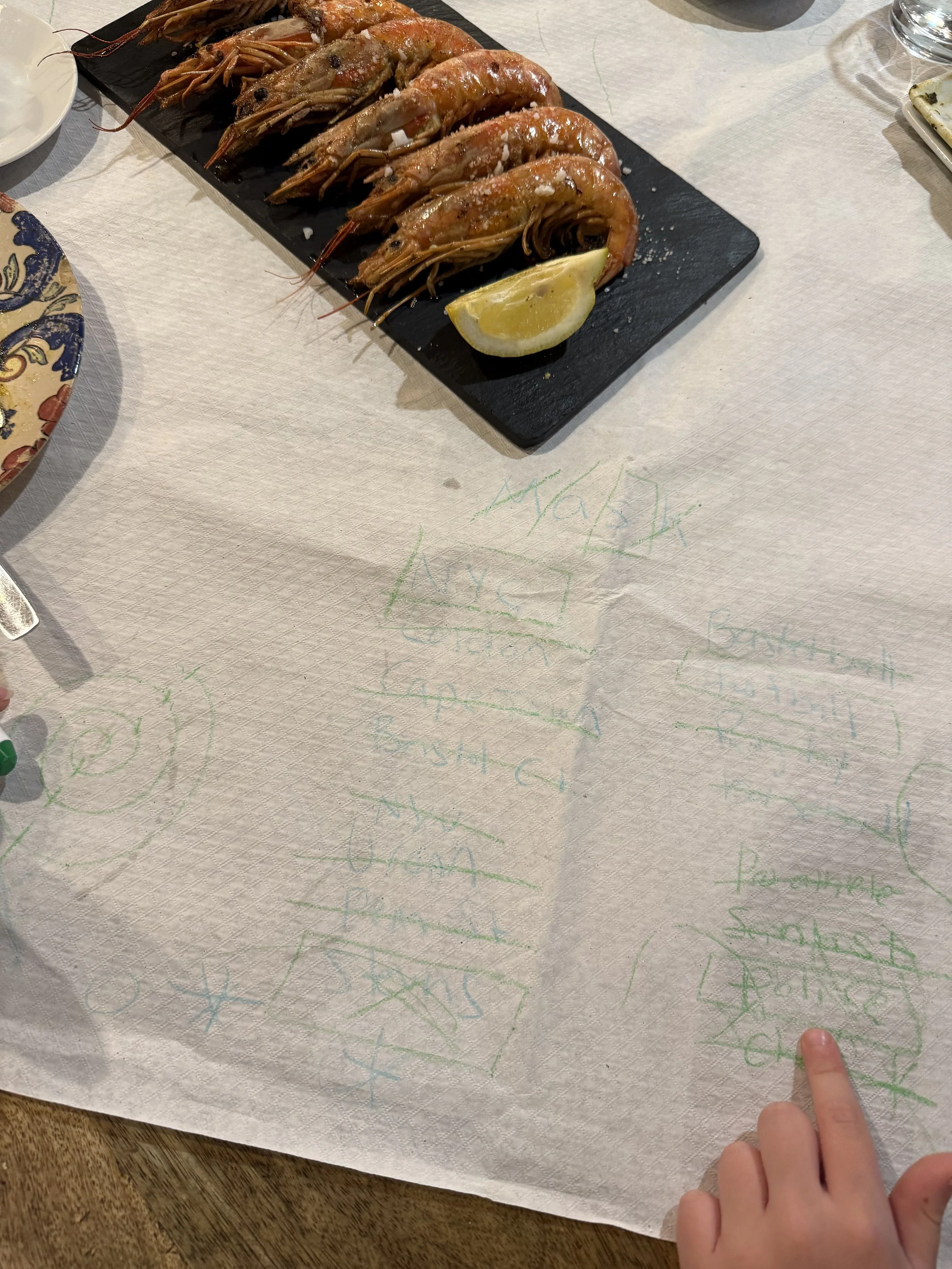We went to a small tapas spot nearby to round out our dinner. I had small treats in my bag for the boys that kept them happy and entertained for a bit at the start of the meal. We then played hangman and MASH on the paper tablecloth to avoid playing Uno for a night. We wrapped dinner after 10pm and ate gelato near 10:30pm then it was straight to bed. When tucking the boys in tonight, I told them, “Thanks for spending our anniversary with us!” and Lenny goes, “Whats an anniversary?” and Ollie, “Wait that was today?”