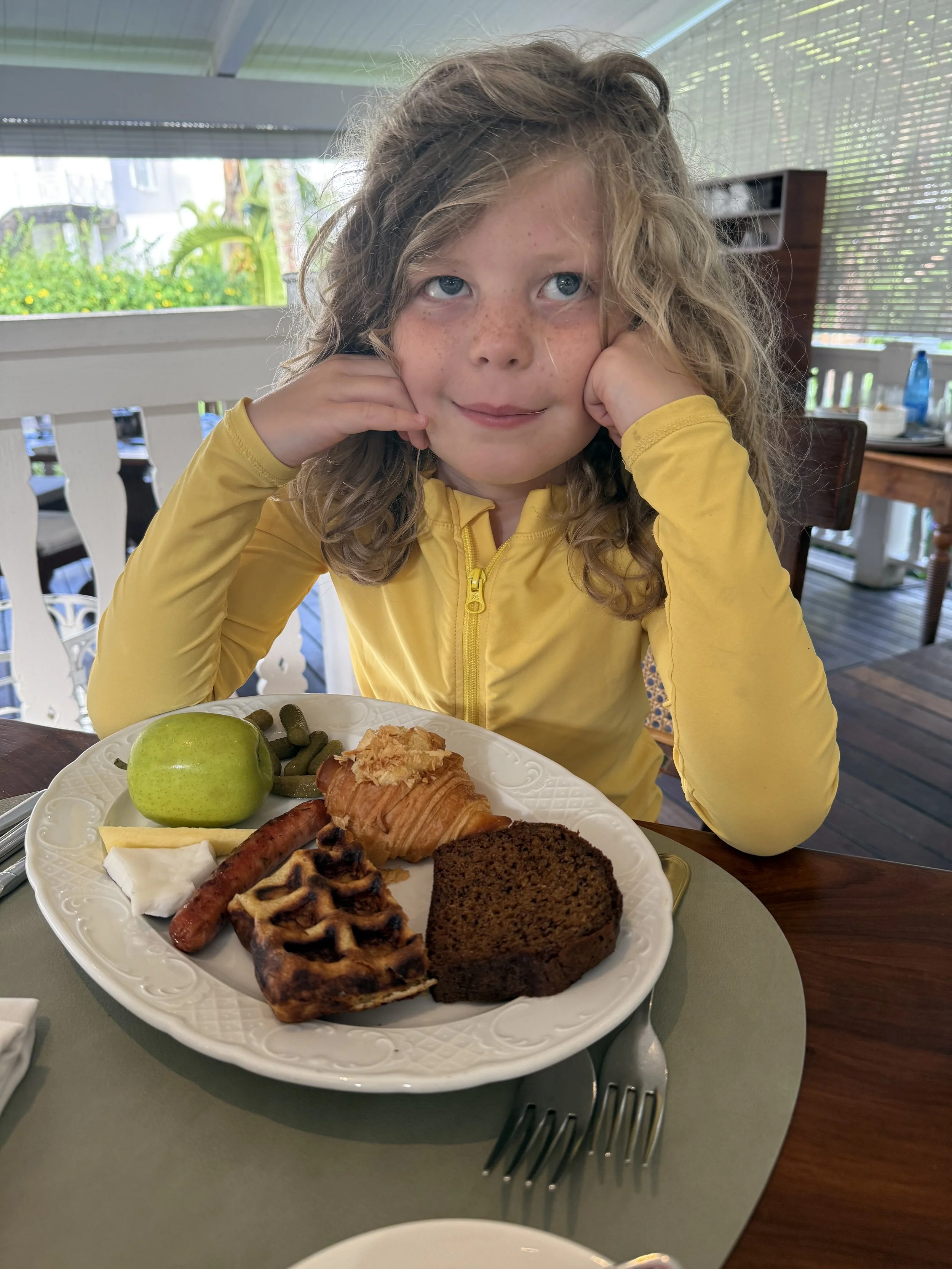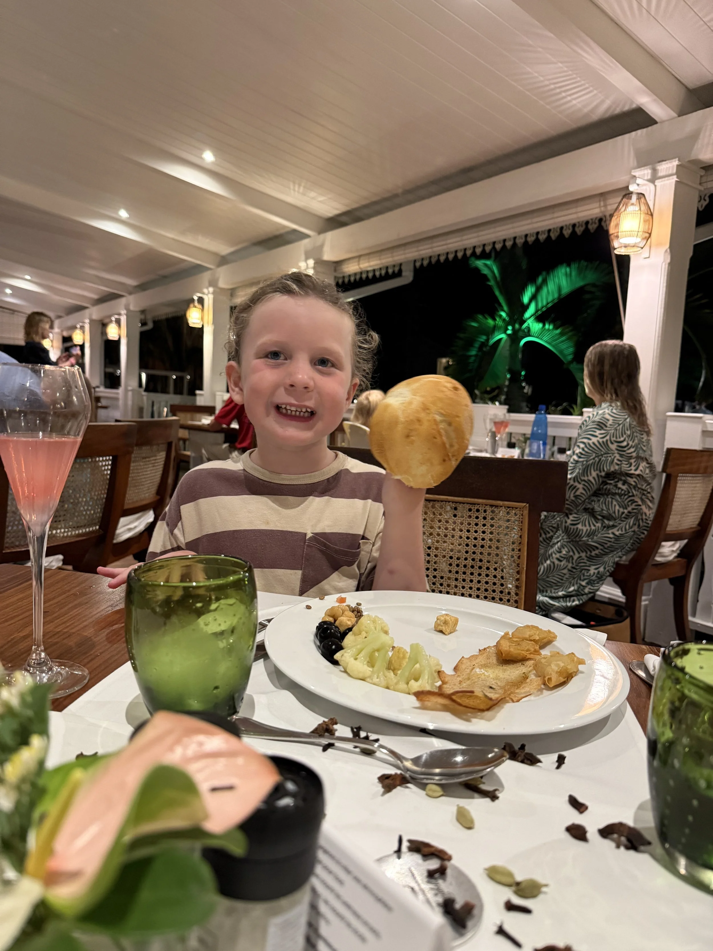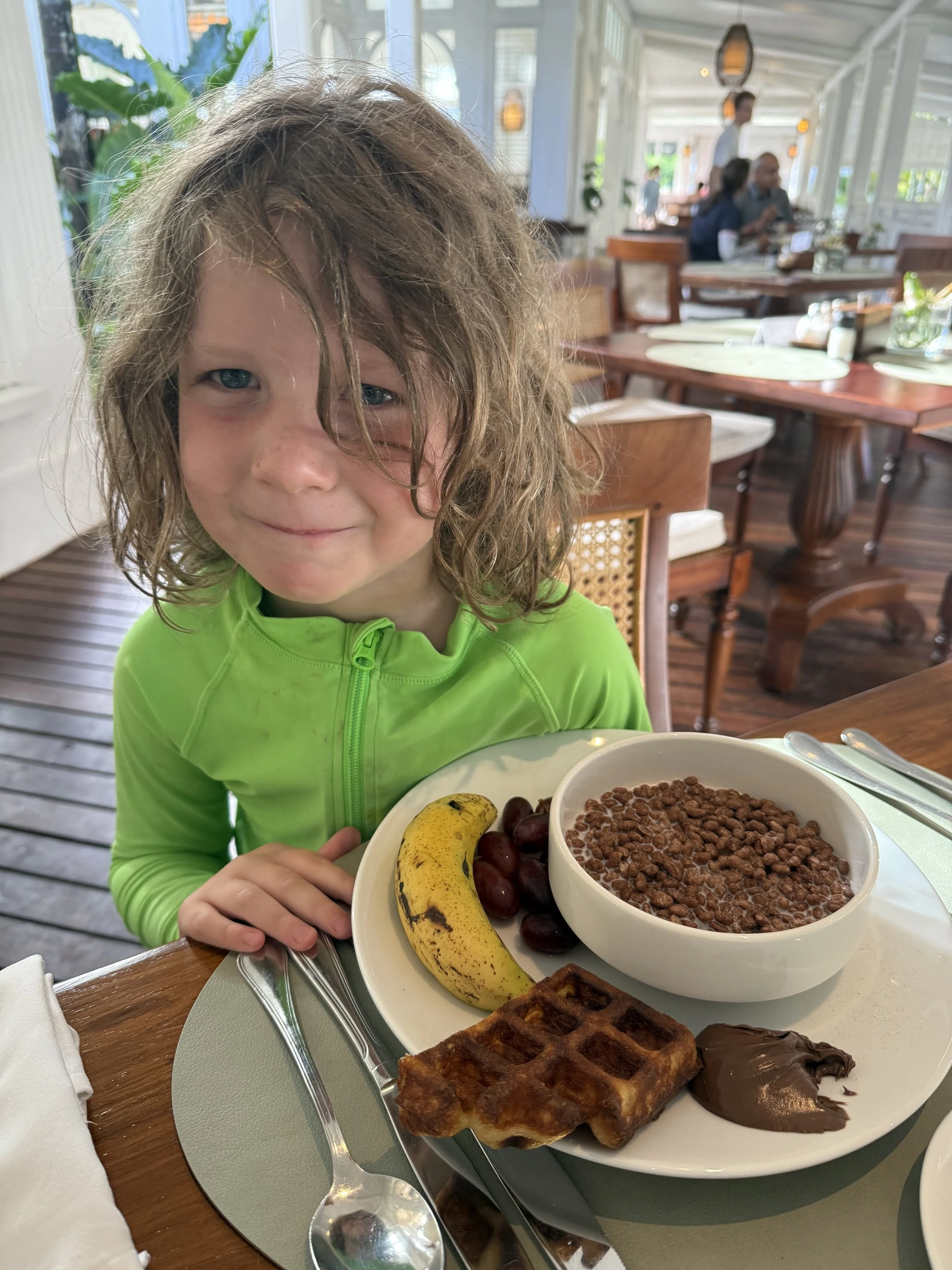 The boys had their normal breakfast mix of odd flavors, though Kayleen as introduced Lenny to Nutella and he is a big fan. They call it Cocotella in Mauritius, which actually makes more sense, but it tastes the same.
