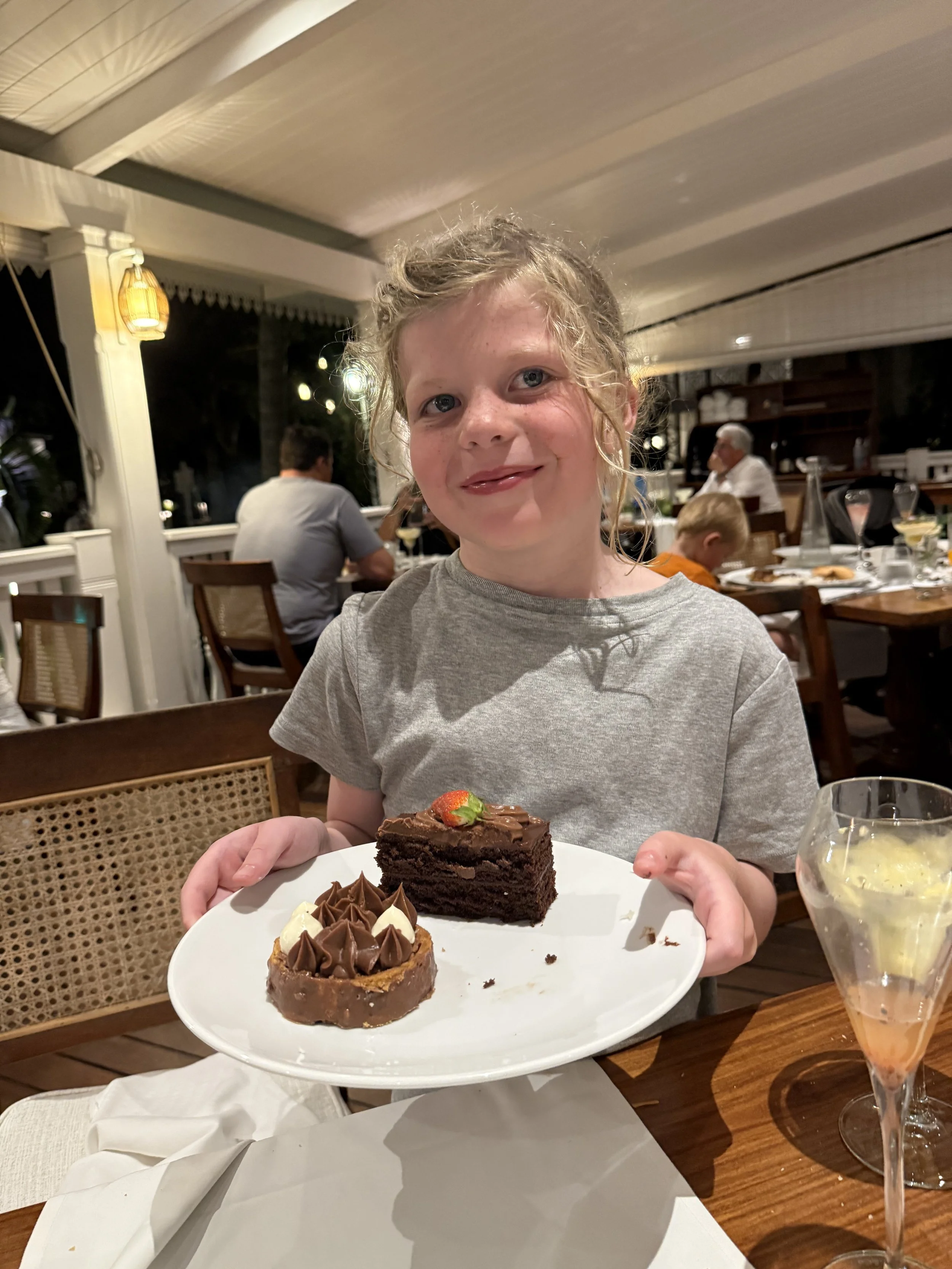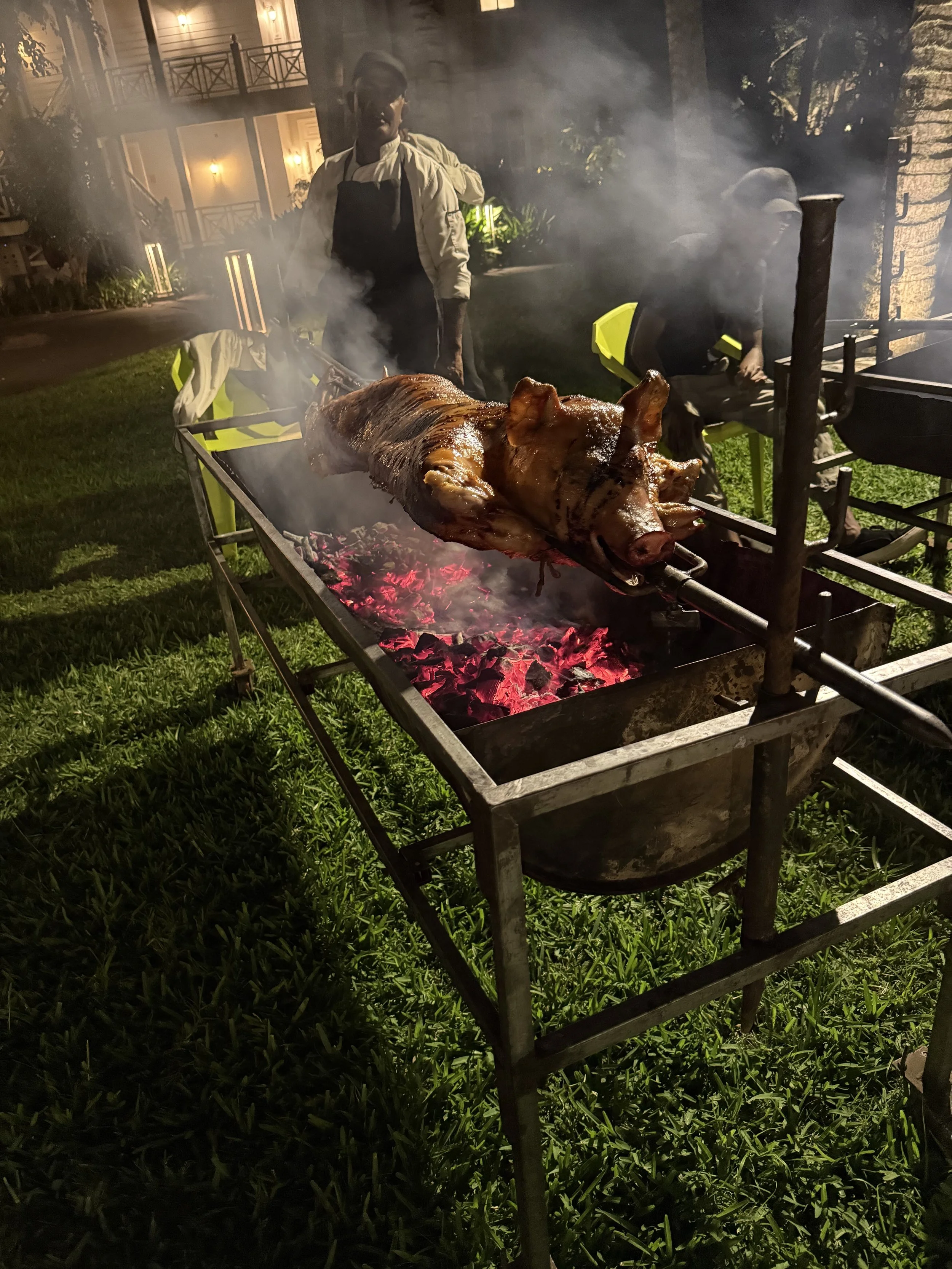 They had dancer preform before dinner which we all watched, Ollie most interested, until Ollie dropped his full water bottle on Kayleen’s toe. After we were seated it was the normal buffet, like the first night for dinner, but there were some extras. There with a pig roast and a few other fancy meat and fish stations located where the dancing was outside of the normal restaurant. Kayleen and I both looked at each other and said how can this cost nothing…