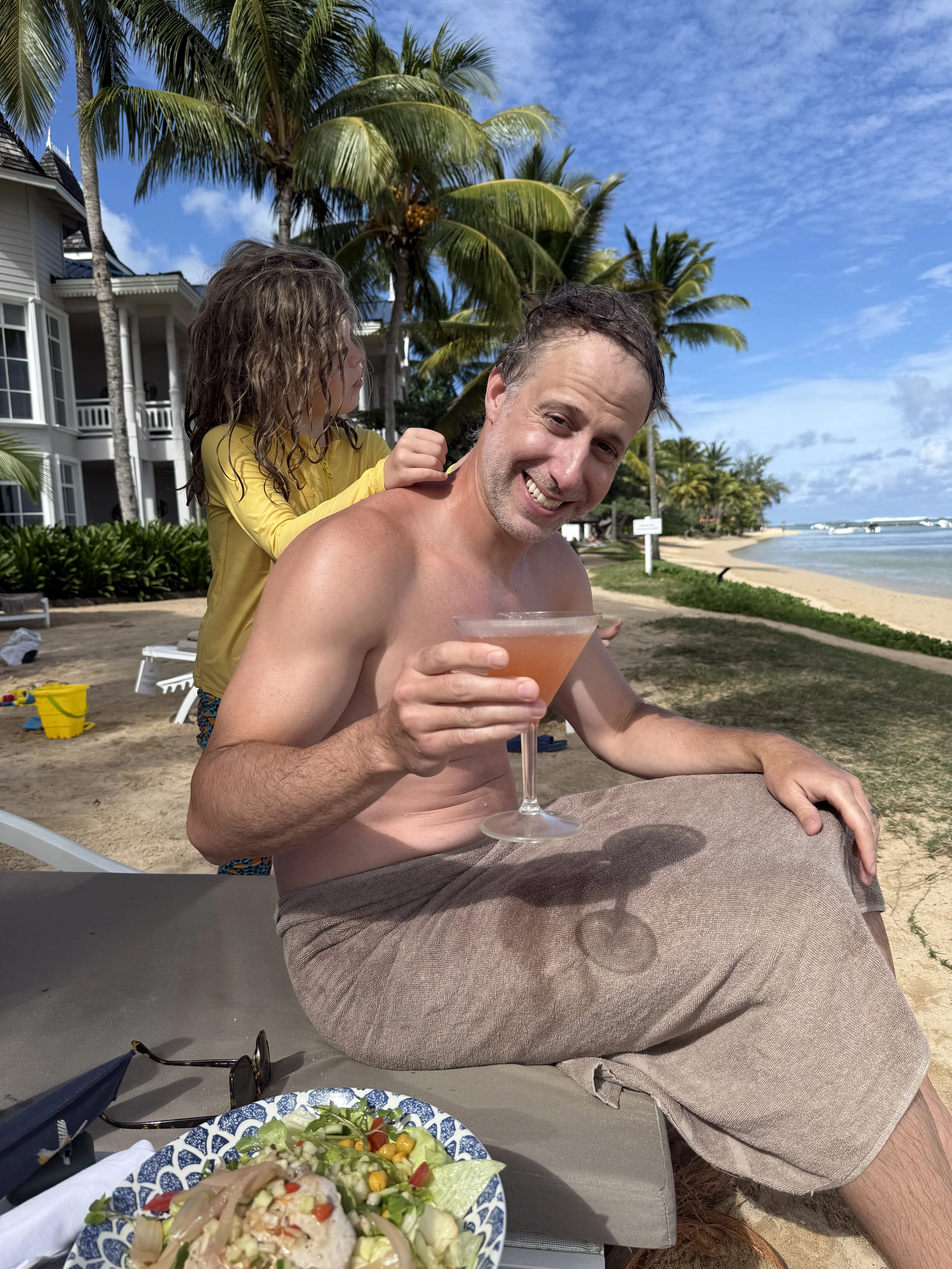 Our lunch arrived shortly after he left which gave us time to eat in some peace as Ollie played in the water. I have tried every drink that could be made frozen at this place and they all come shaken and with very little ice. Piña colada, margarita, strawberry daiquiri all served shaken! Today was the final straw, a strawberry daiquiri while sitting on an 85 degree beach was served shaken, with no ice, in a martini glass. The resort itself is lovely; the grounds, the pools, the kids club, the amenities, but the food and drink PASS.