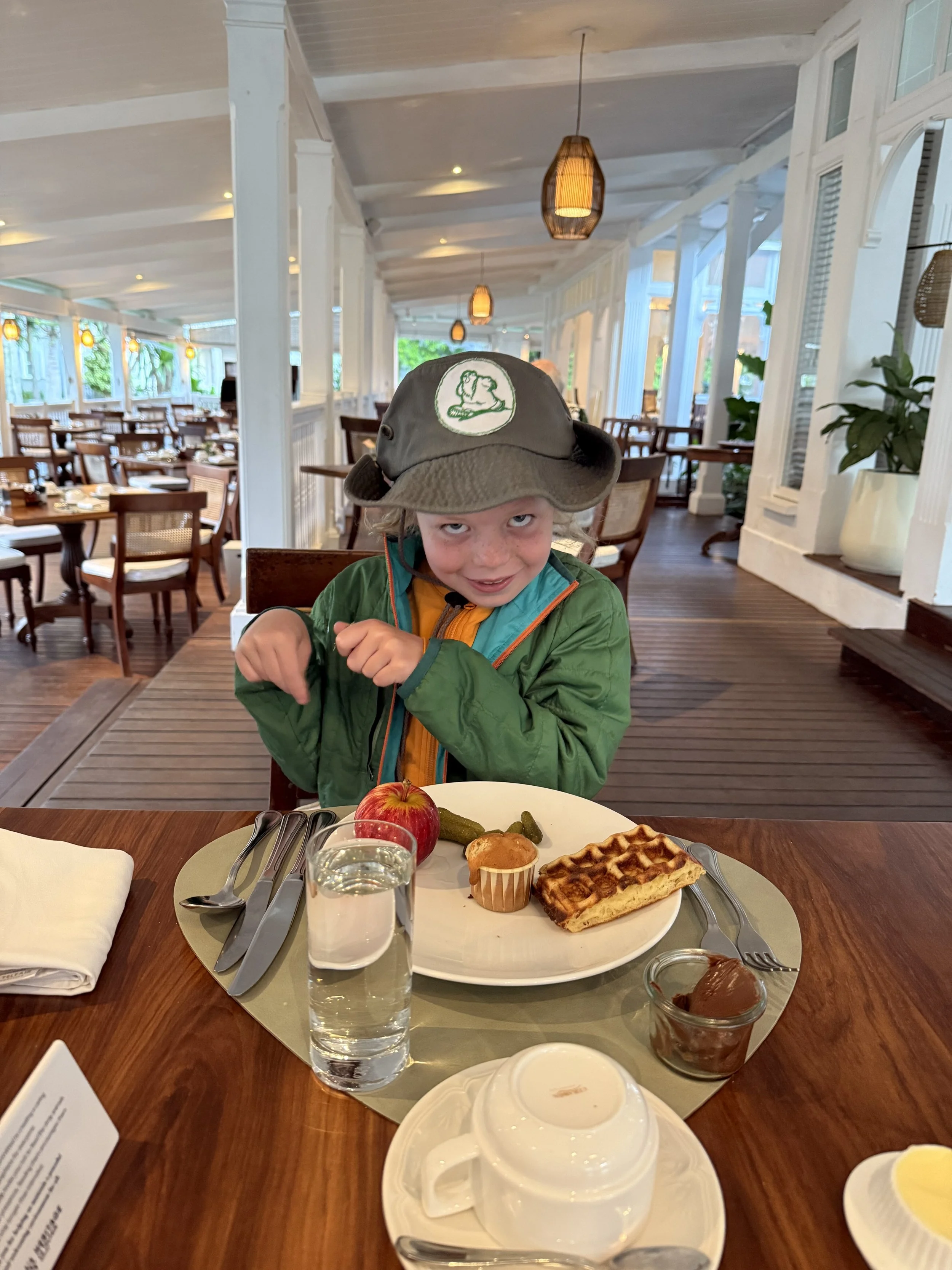 It started to rain after lunch, so our planned mini boat adventure was delayed until tomorrow. Despite his early wake up and bout of sea sickness, Ollie was the only one who didn’t nap. Instead, he wandered the room, opened the curtains and sighed loudly waiting for us to wake up.