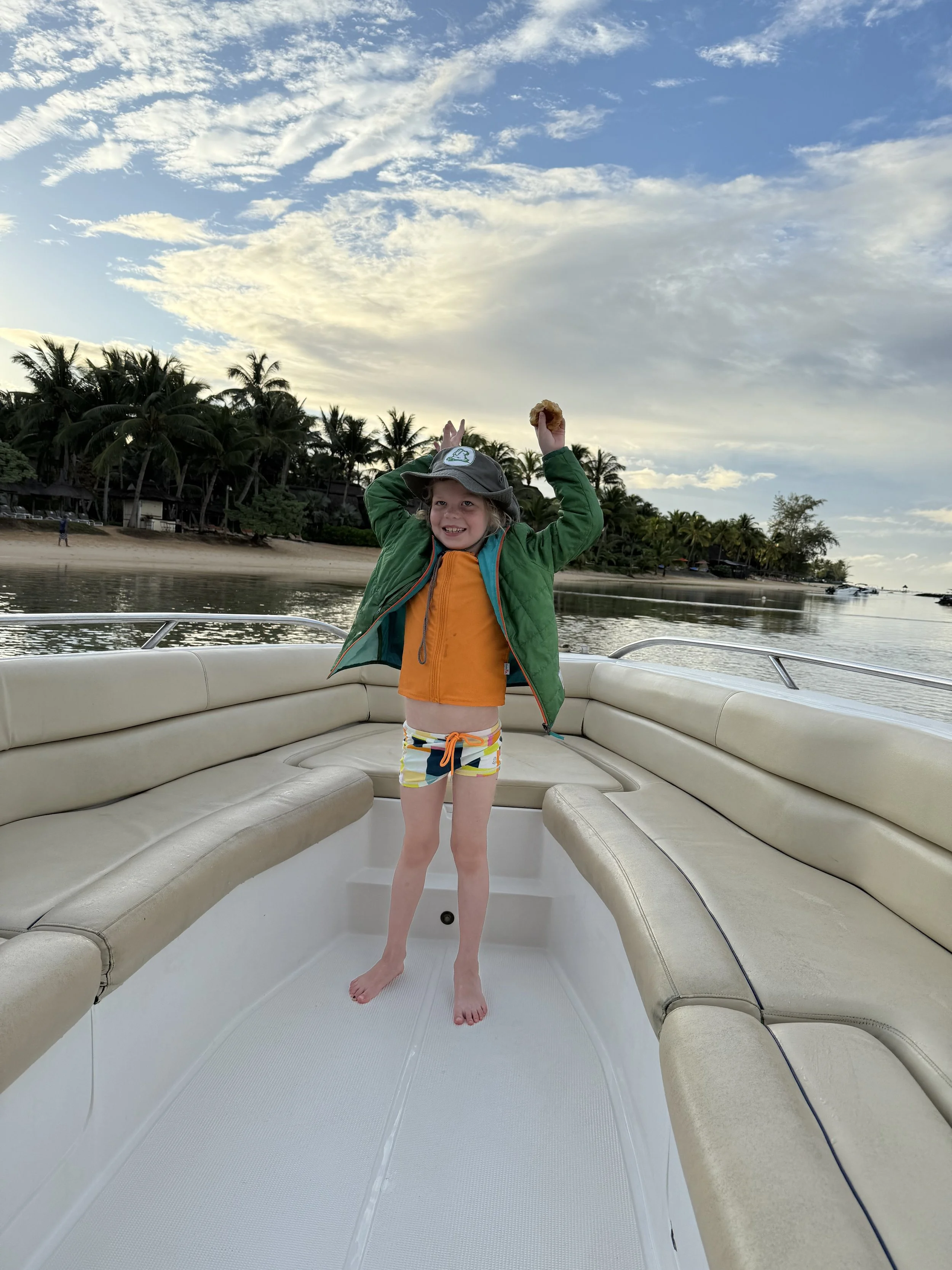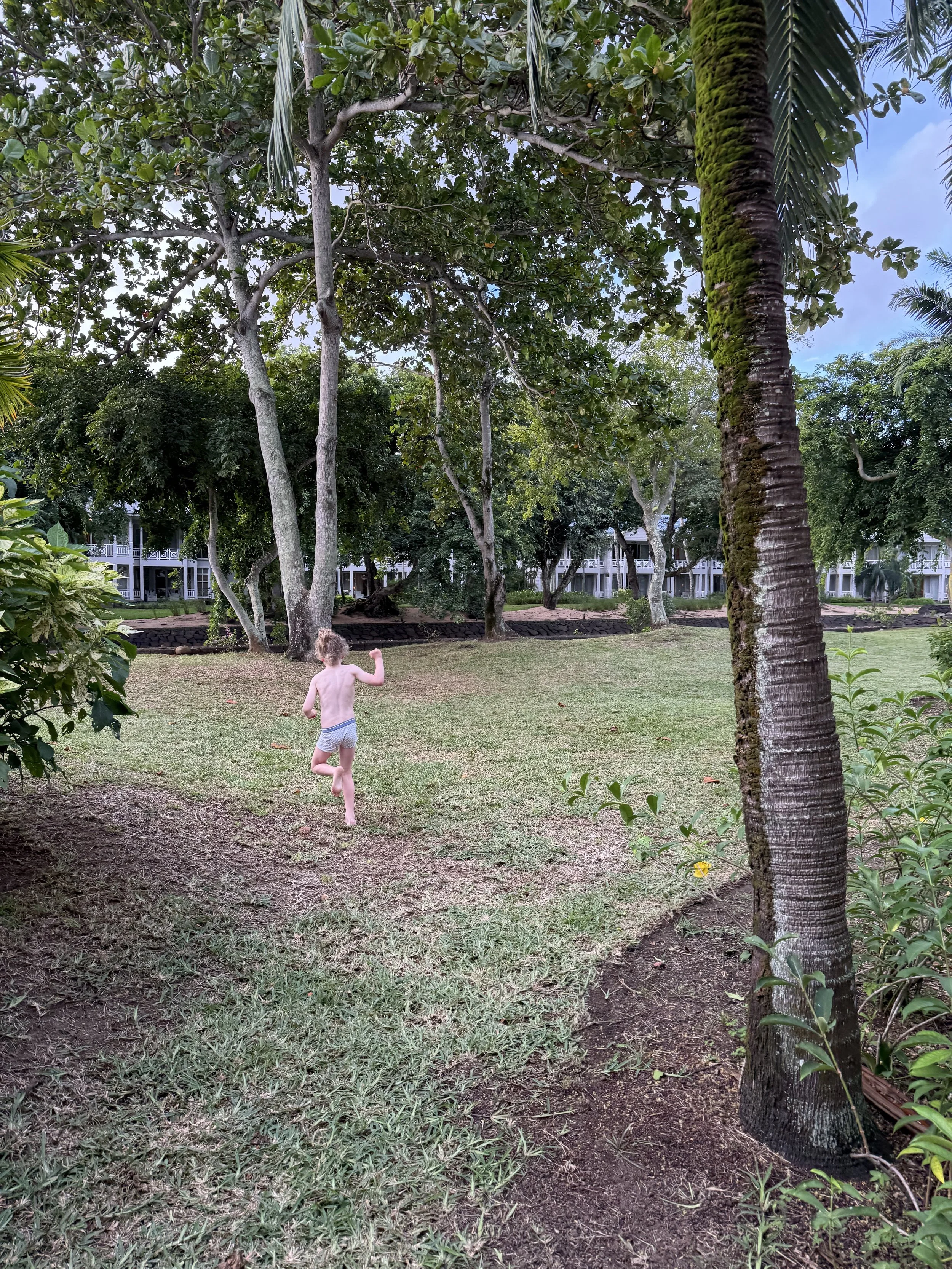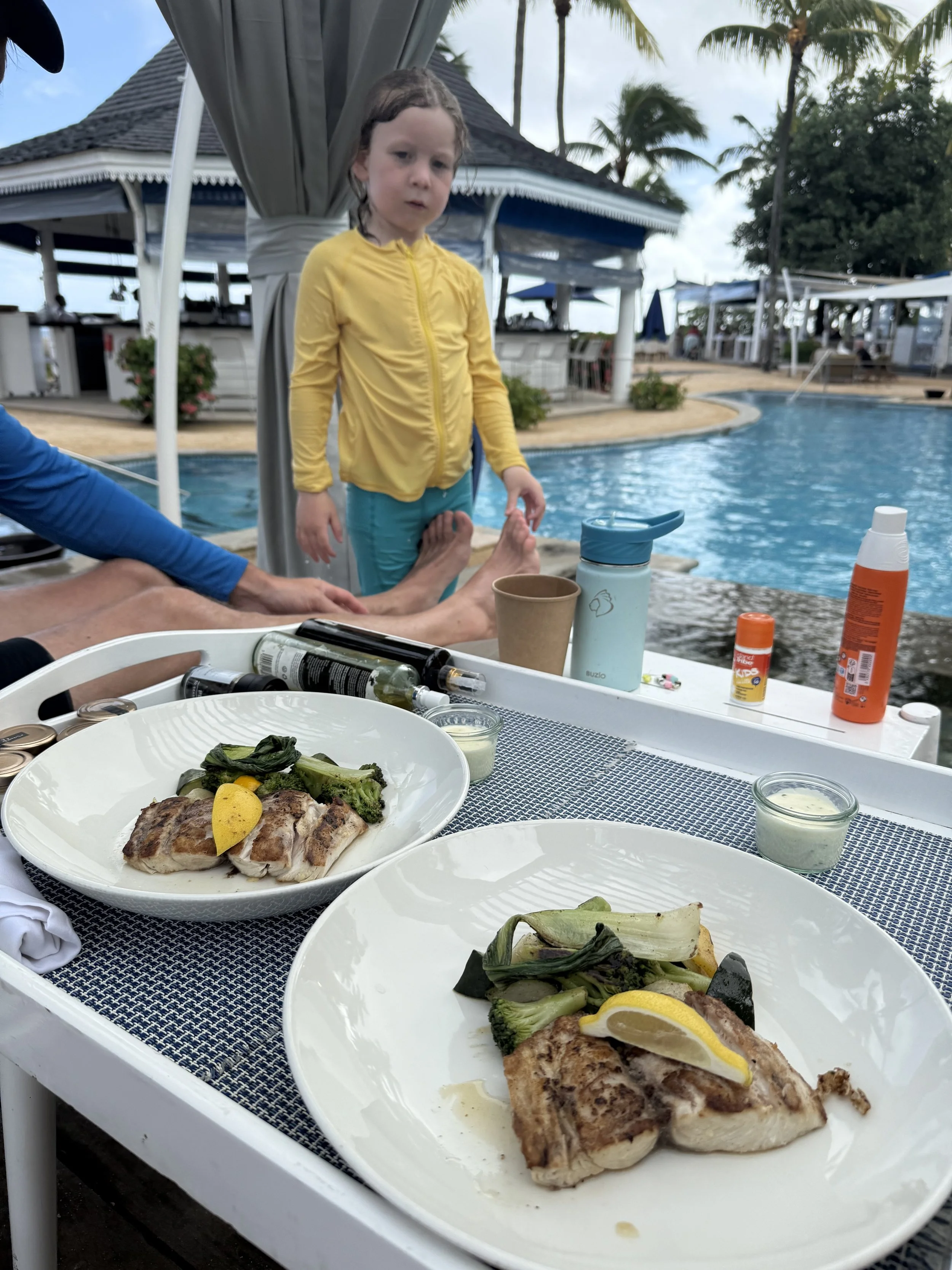 The resort chef made Kyle and I a simple, tasty lunch with the mahi fillet, a garlic butter sauce and veggies . He then clarified there was a good bit left over so he could make a mahi curry tomorrow for lunch as well. The boys tried the fish but made it clear that it “was not their favorite.” Though Ollie was thrilled that our catch was providing food we were happy to eat.