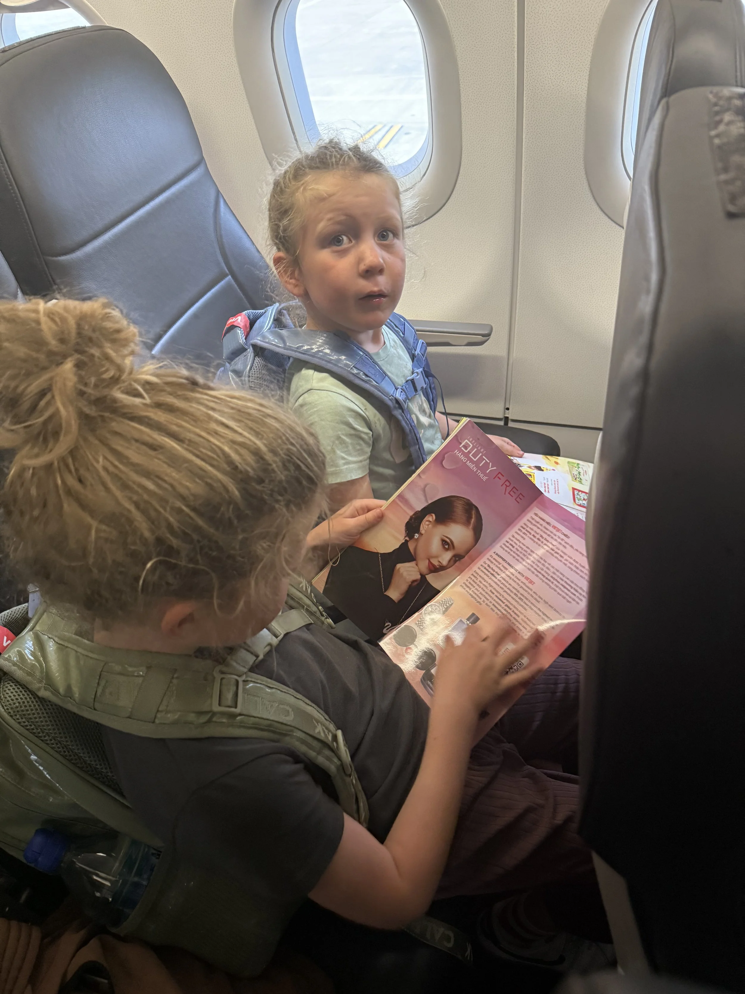 Everyone was tired by the time we got to the Vietnam customs line. The boys were playing/fighting on the ground over a water bottle until the customs agent called us. Any foreign official in a uniform usually gets us 5 to 10 minutes of good behavior after we remind the boys that the person can take them to jail in this country.