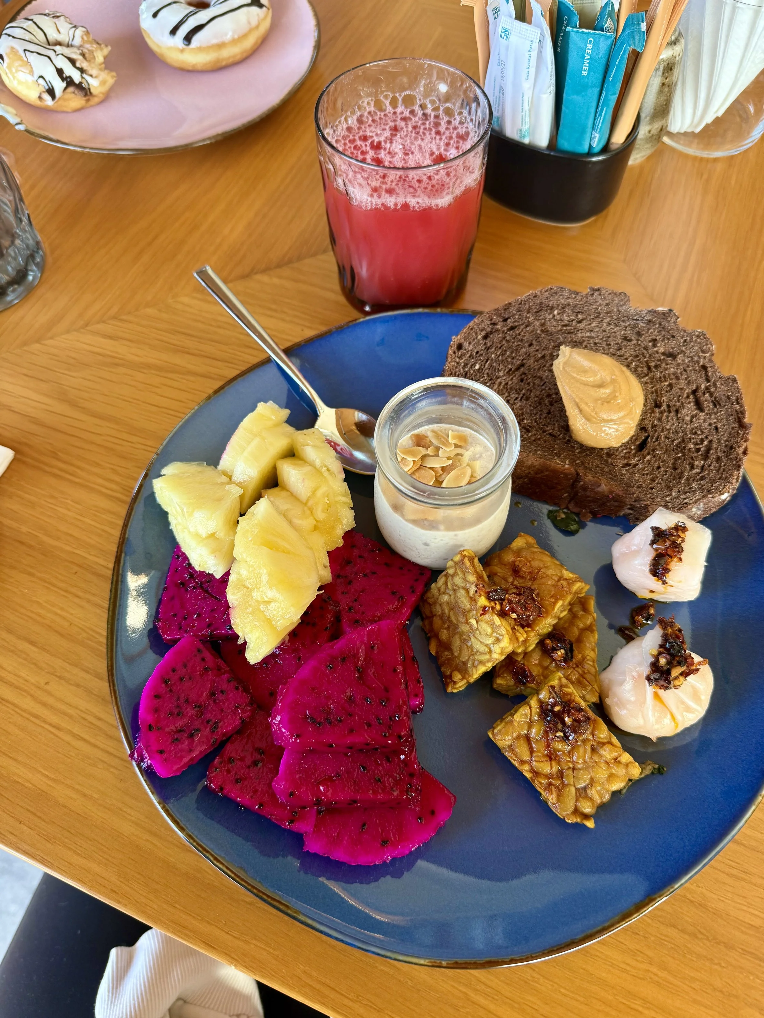 I was doing the checkout process while Kayleen and the boys headed to breakfast. They only beat me there by 3 minutes but when I arrived, I saw Lenny alone at our table with nothing but two doughnuts on his plate. I asked him if Kayleen knew what he had picked and was eating. He silently shook his head no with a big smile on his face.