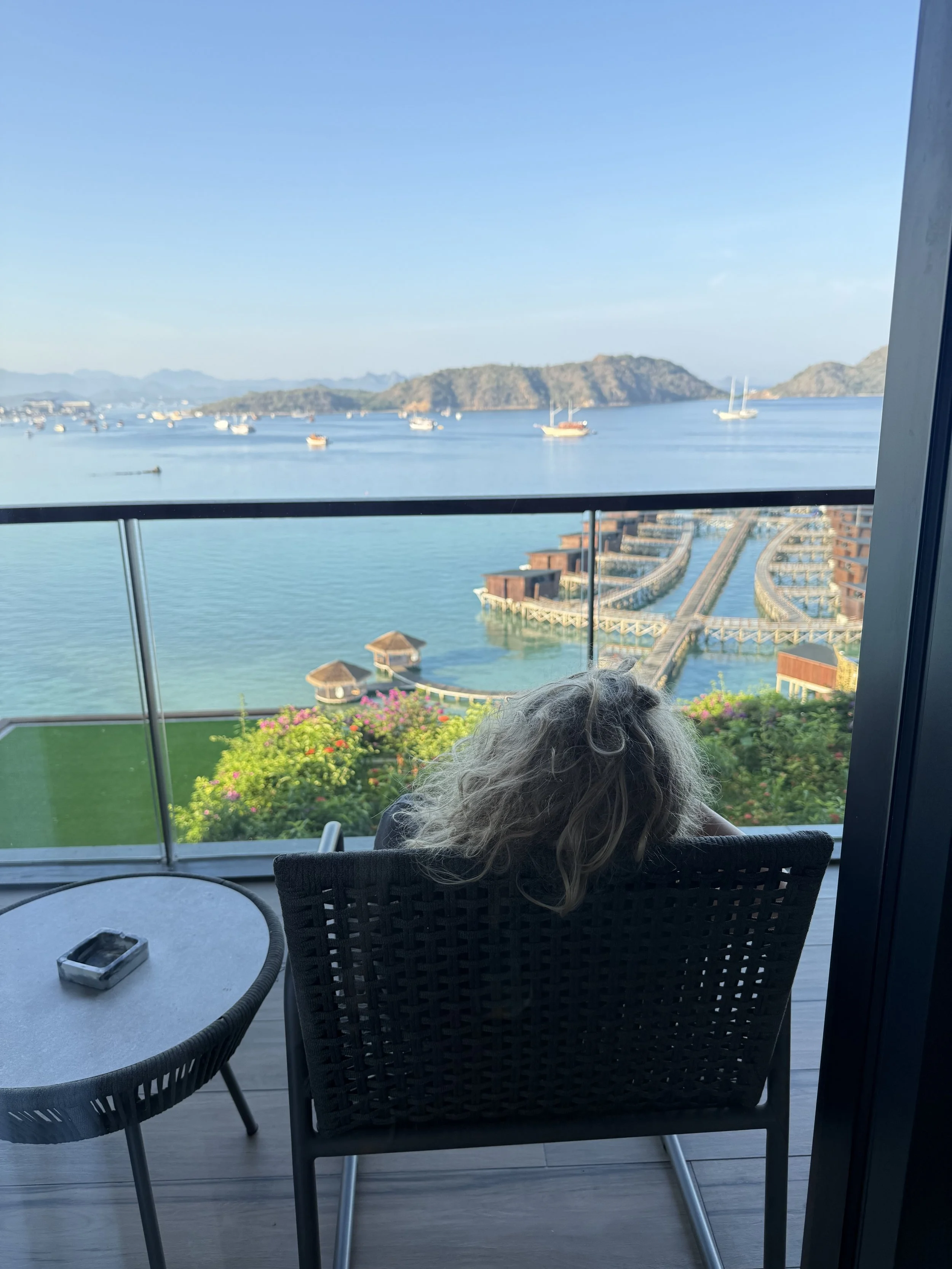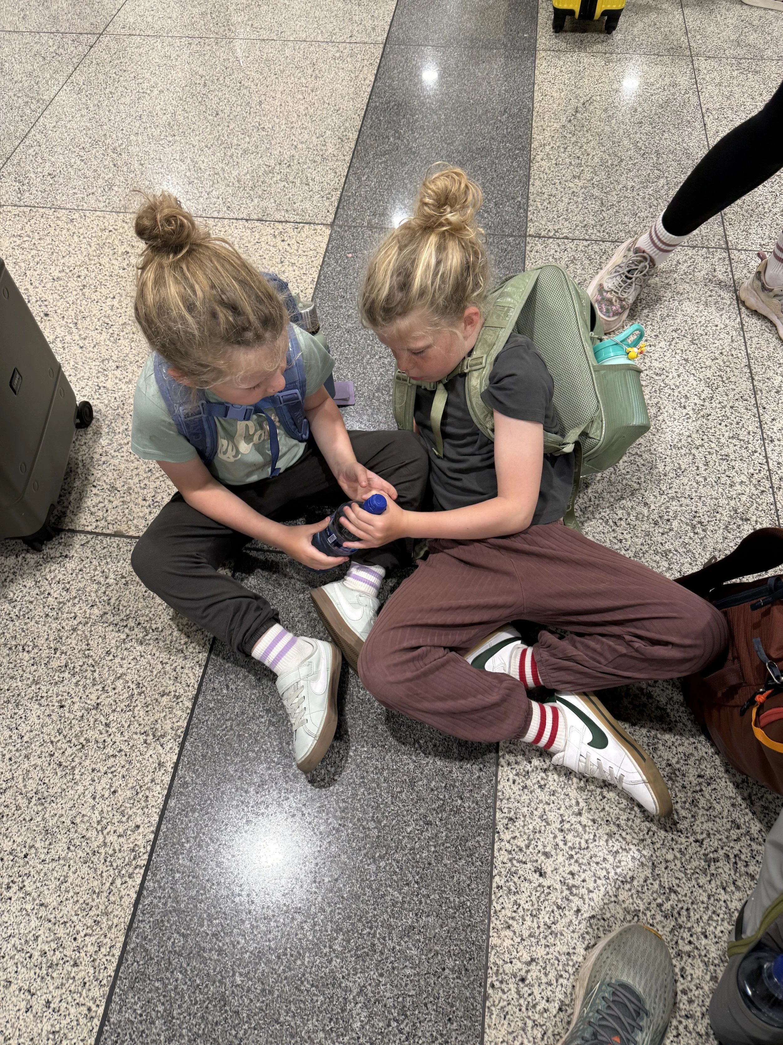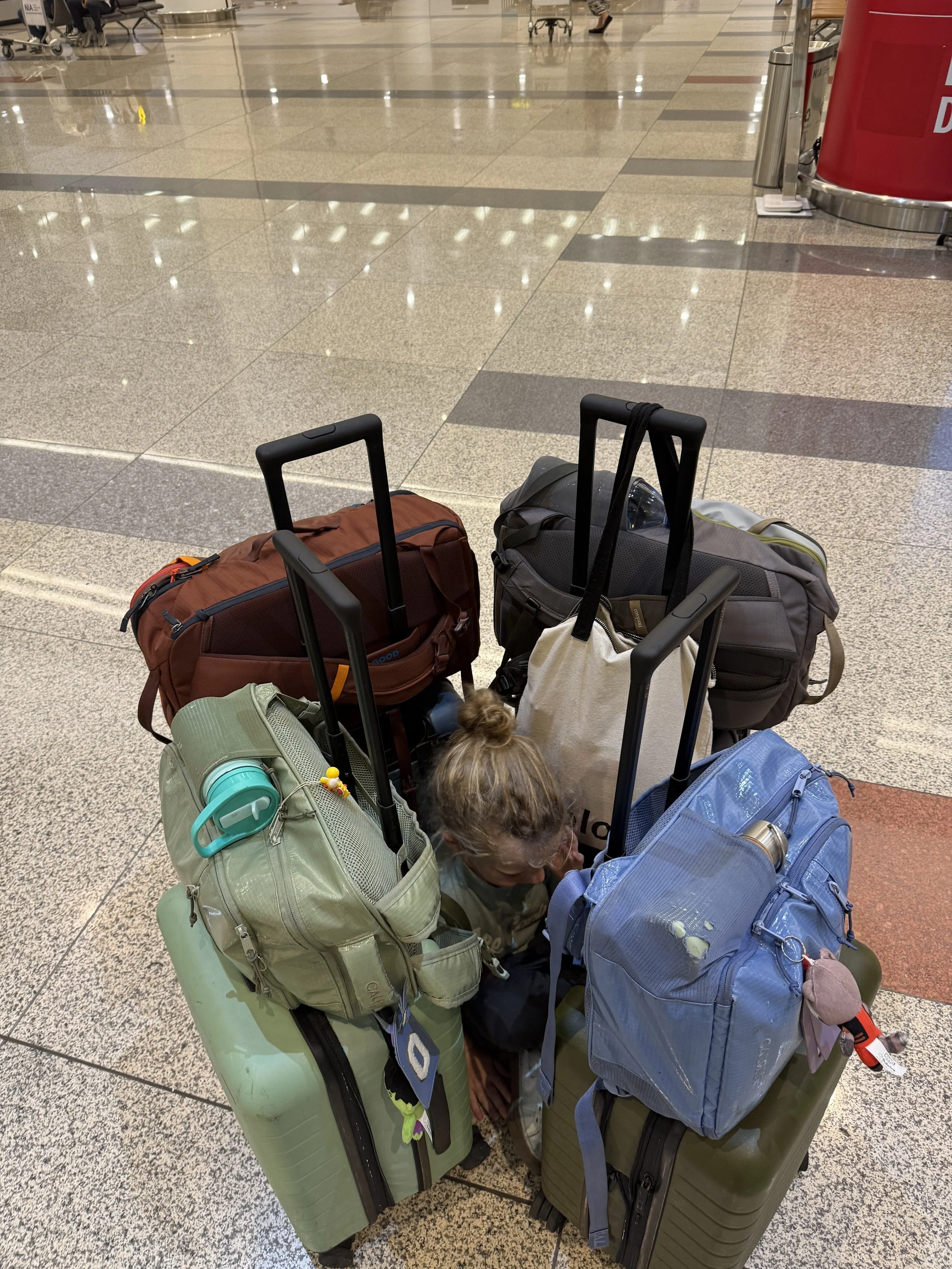 We got an early start to the day since our pickup to the airport was at 7:30AM. Kayleen and I took turns doing quick stints at the gym, determined to not feel gross and lazy on another travel day. Once we eventually got the boys up and moving, they complained of the apartment being too cold so sat quietly on the porch till we told them it was time for breakfast. They must have been still half asleep to sit so still!