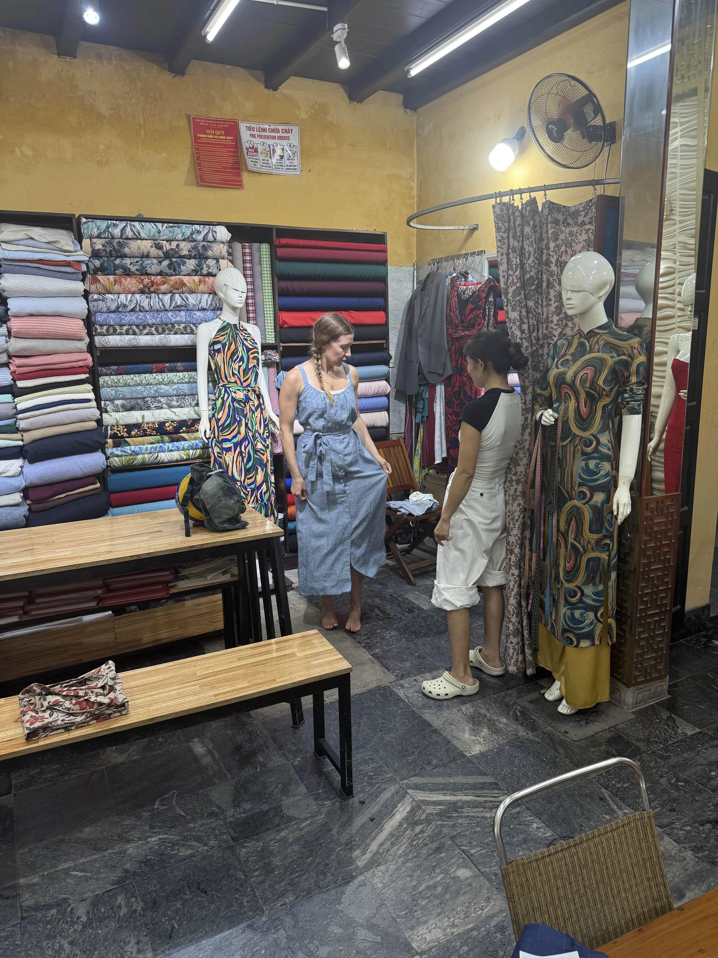 When it was time to go the sun had cooked our motorbike seats but after having them in Bali Lenny is always on the lookout for this. He grabs any water bottle he can find and takes pride in his duty to cool off the seats. We were off to the tailor first to pick up our items. Our first long ride was uneventful and the phone holders where much better than in Bali. It made navigating a lot easier but Ollie was a bit sad to lose his navigator duties. He did eventually take over as DJ to change Spotify songs as we were driving.