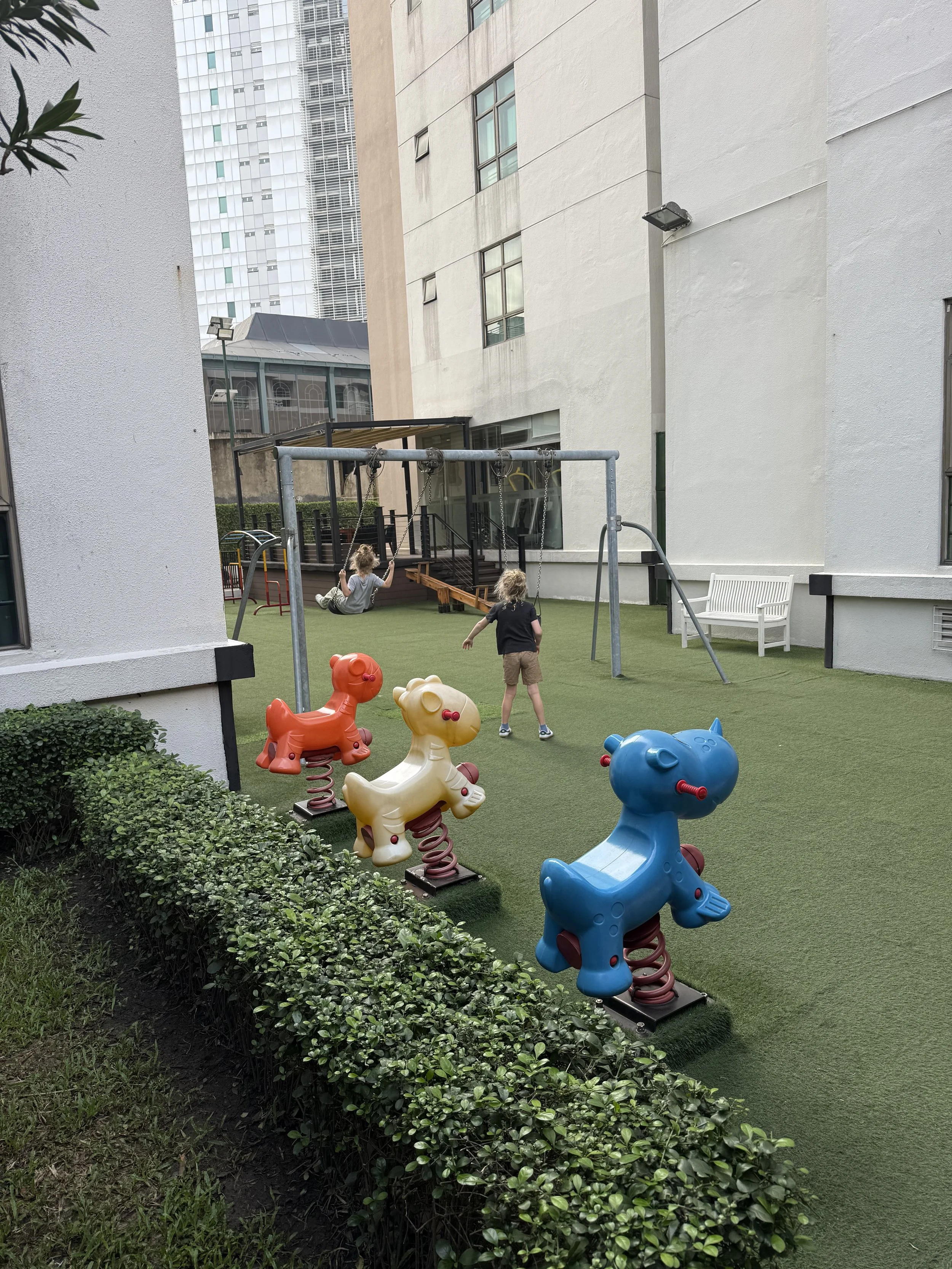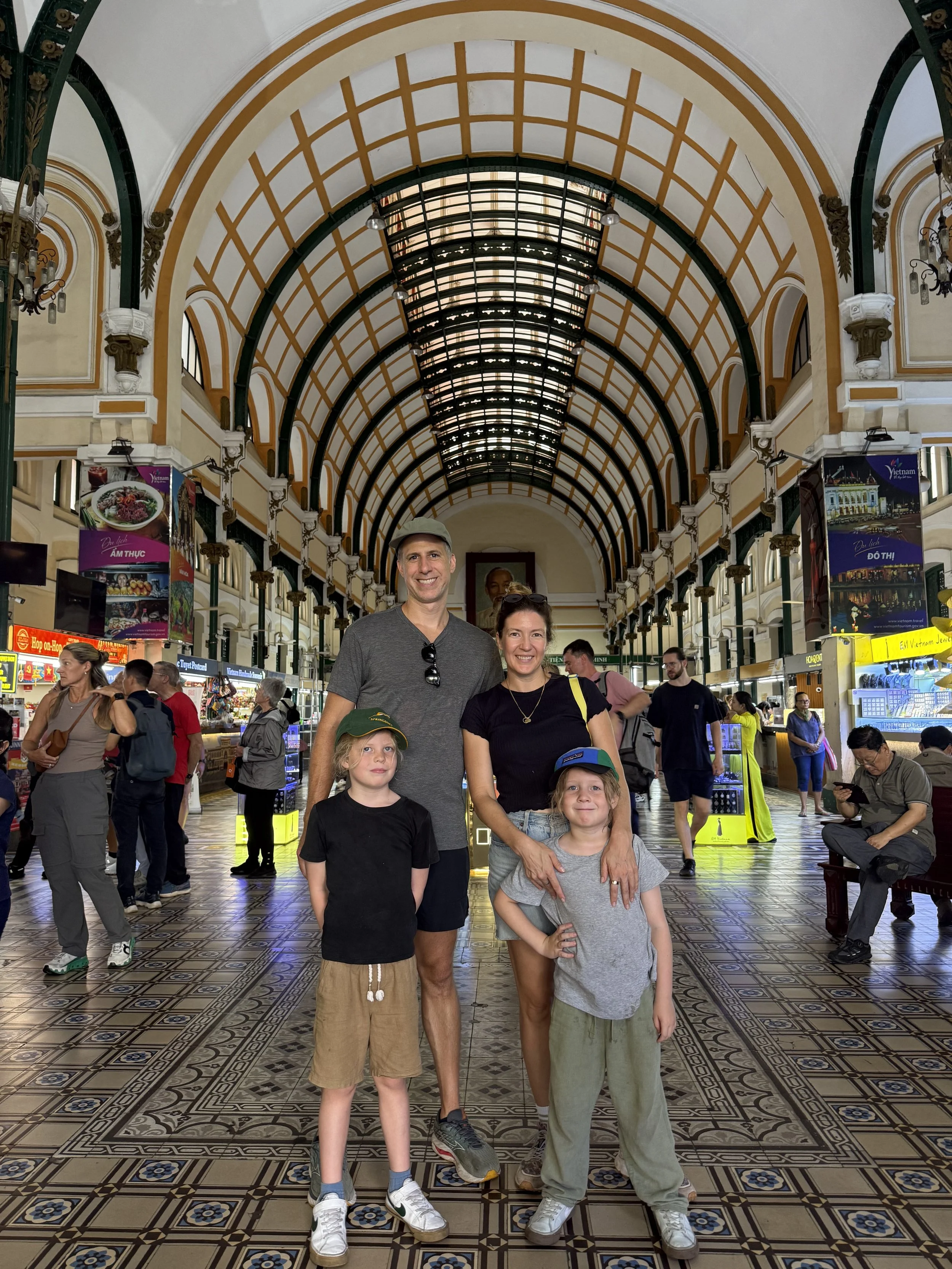 Our first full day in Ho Chi Minh City, which even locals still call Saigon so I will refer to it as Saigon from here on. There was a nice little park outside the hotel restaurant that the boys ran in and out of breakfast to play at. I went to check on them and saw Ollie pushing Lenny nicely on the swing much to my surprise. Once they came in to eat, we did notice a few bug bites on them from the playground time which is always a bummer but especially with Lenny’s sensitive skin.