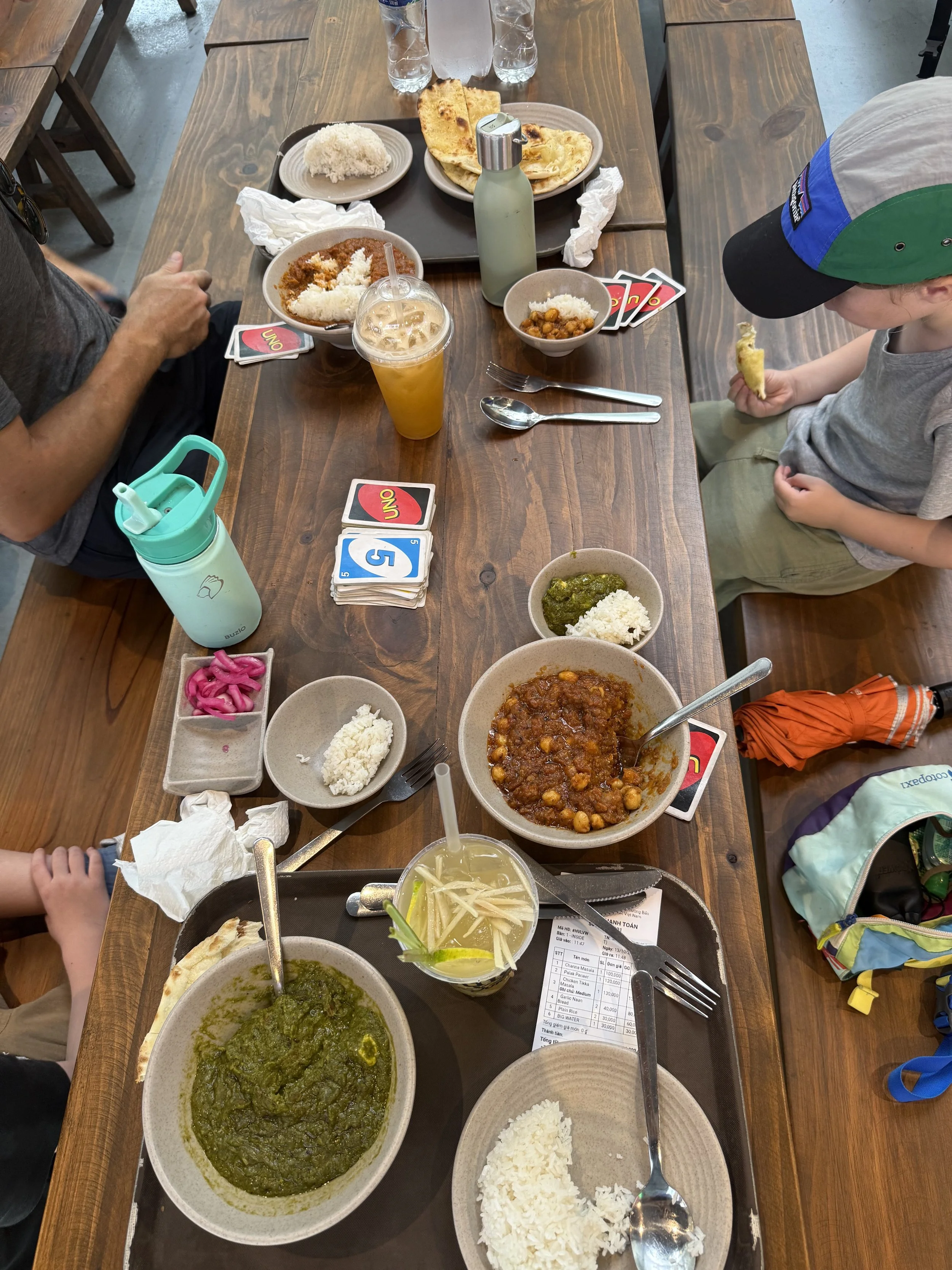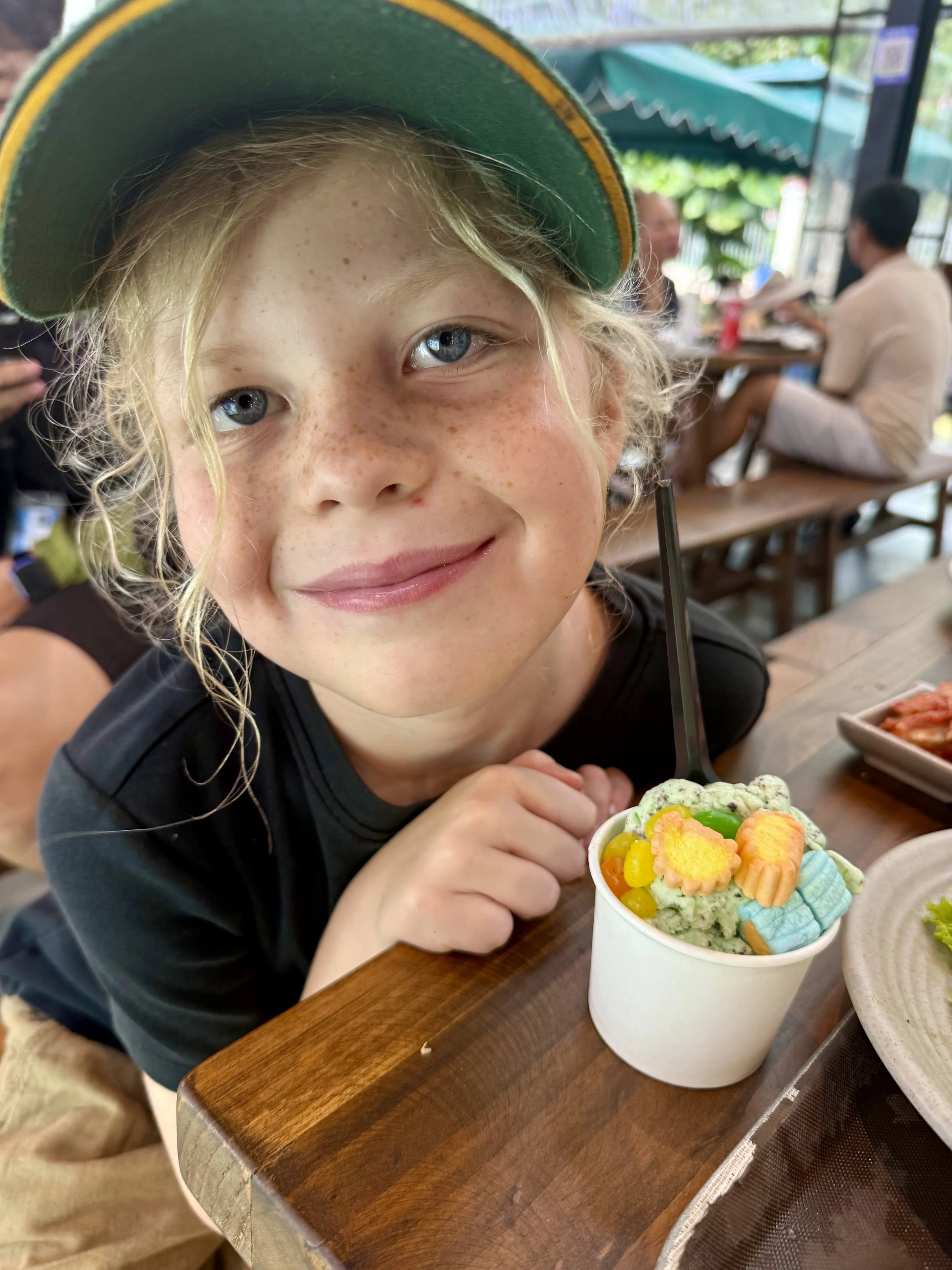 Lunch was next. There was supposed to be something booked for us but Kai was not aware so he took us to a big street food hall. It was a fortunate mistake because all of these prescheduled meals usually come with preset menu which rarely has something that kids want. Kayleen and I went with Indian food and the boys got some sushi and dumpling but ended up devouring a lot of our naan. They topped it off with a fully loaded ice cream that Ollie ate every bite of but Lenny seemed to only want the candy toppings and left most of the ice cream.