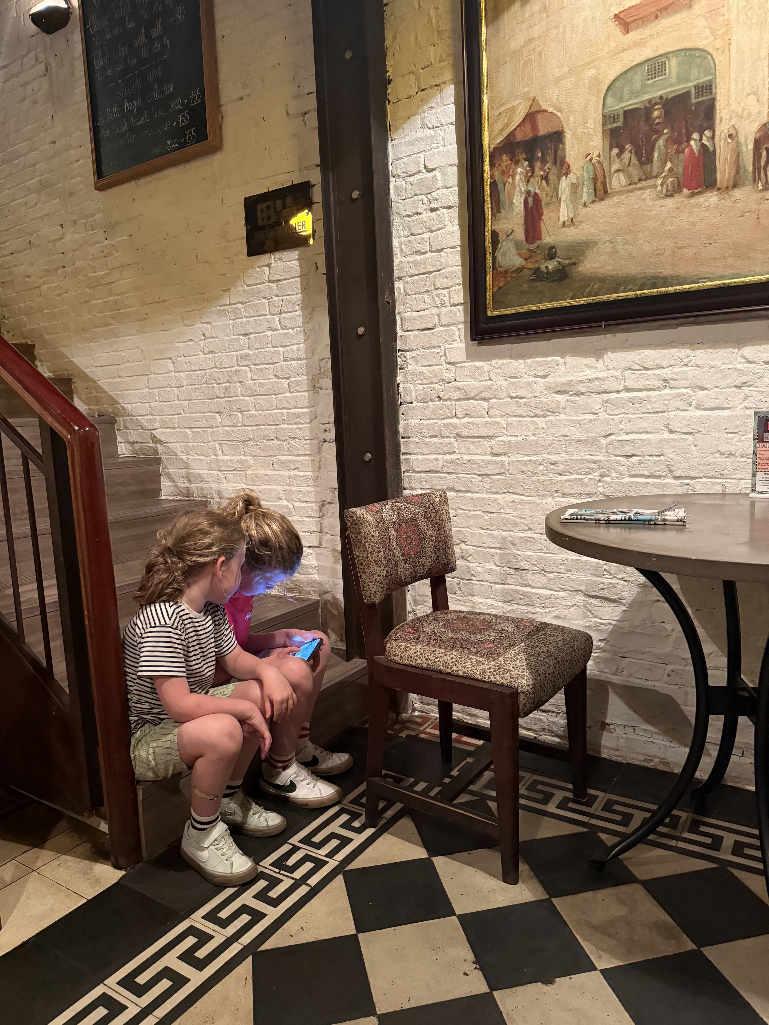 We walked a few blocks to Au Parc cafe for another mediterranean meal. My stomach has not been feeling great and Kyles been under the weather so we opted for some familiar comfort food once again. The boys ate a ton of hummus, bread and pesto pasta. I tried to sneak babaganoush into a flatbread rollup I made for Len but he wasn’t having any of it. We played more Uno with Ollie continuing to be in the lead and me in dead last.