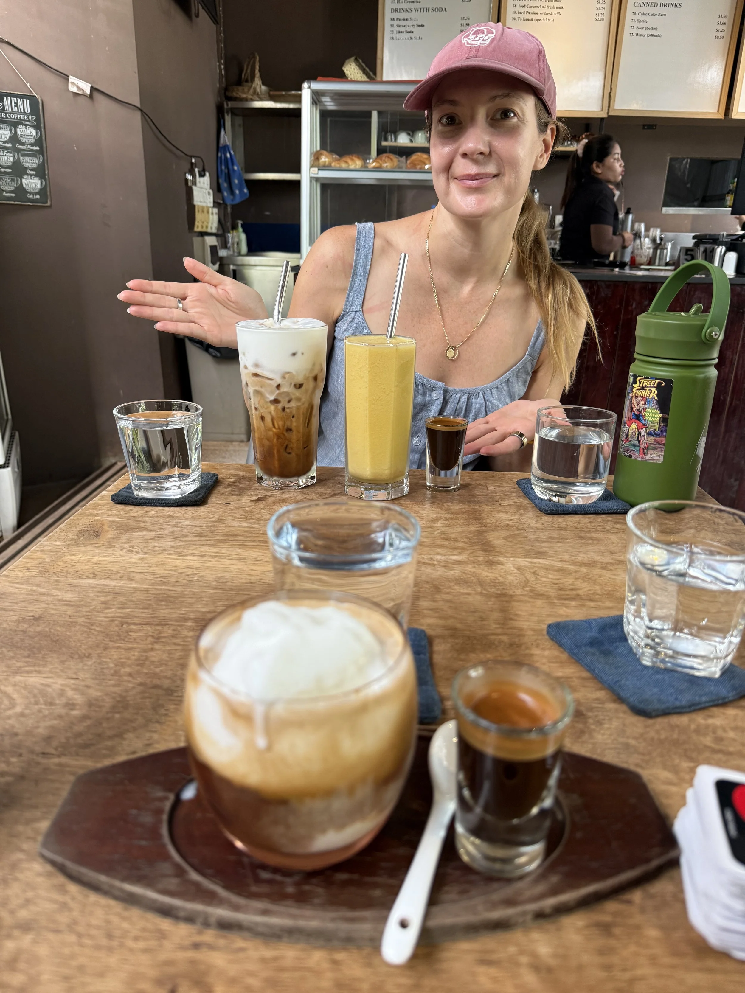 At the nail salon I opted to get a pedicure too since the prices were so reasonable. There ended up being one person working on each extremity— 4 people in total! It felt absurd and I was sure to tip them all well. I opted to walk back to the hotel to get some movement before a sedentary travel day. It was SO hot and I was drenched in sweat by the time I arrived back to the room and Kyle goes, “Walked back, huh?”
