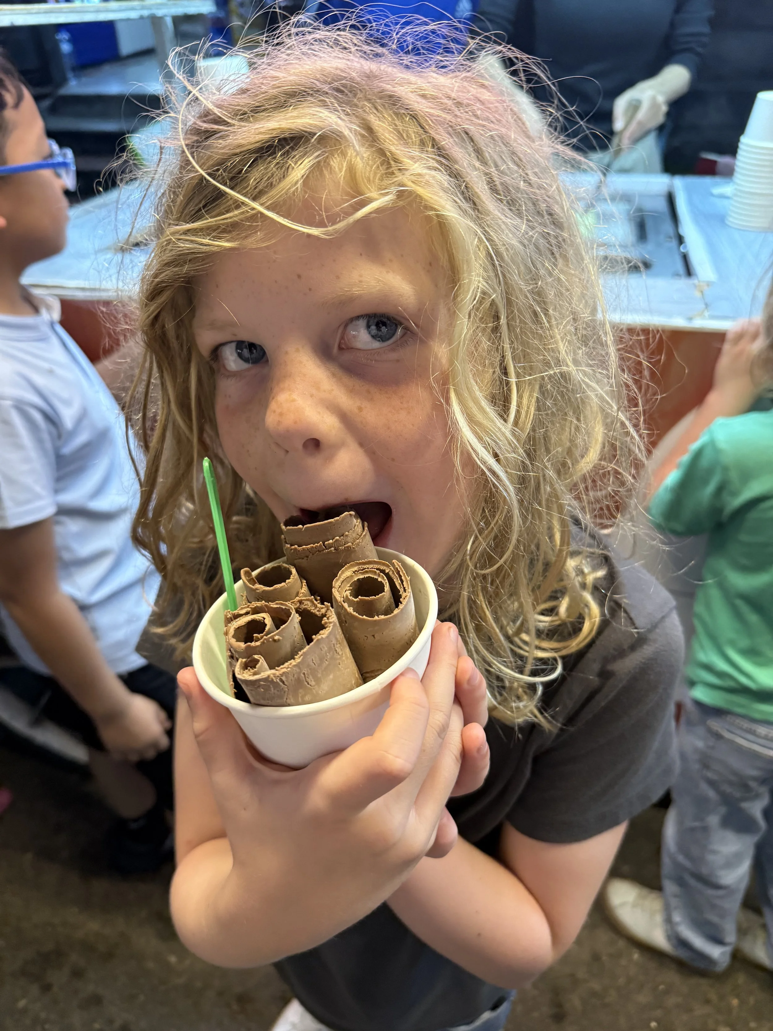 Next, we needed to find some place to eat and play a game or two of Uno. We ended up at what felt like a touristy type of place for but we just needed something easy. The food was fine and the boys were good aside from having the newly purchased ornaments taken away from them as they could not stop swinging them around. On the walk through the market to get to our motorbikes they got ice cream which was a hit. The ice cream was rolled very thin on a freezing melt slab and then rolled into a cylinder. The boys very much enjoyed the show and ice cream. Ollie got chocolate and Lenny got lime.