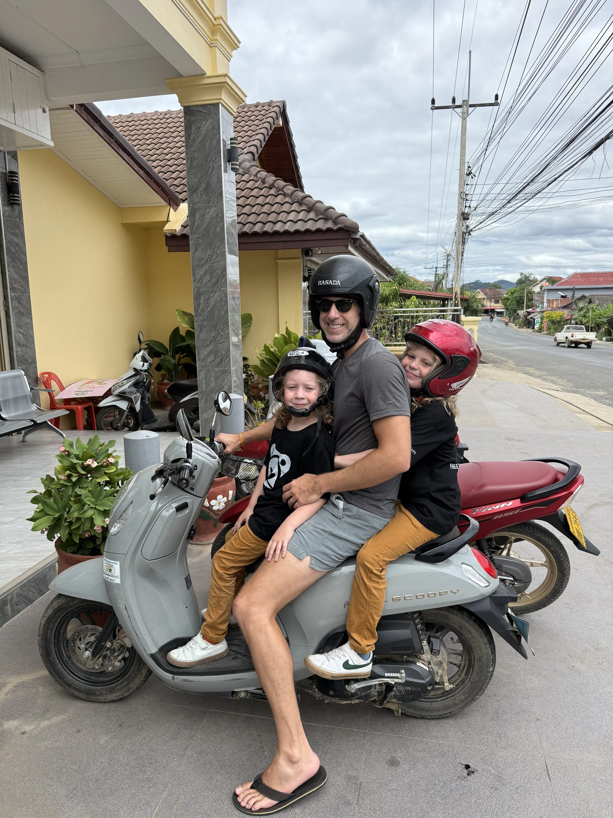 We headed back to the hotel on our motorbikes with a quick stop near the hotel. I attempted a practice run with both boys on my motorbike so we could test out driving to meet Kayleen at the night market this evening. It worked without any issues as the boys are getting to be pretty experienced on them. We have seen local families of four all on one bike many times which boosted our confidence.
