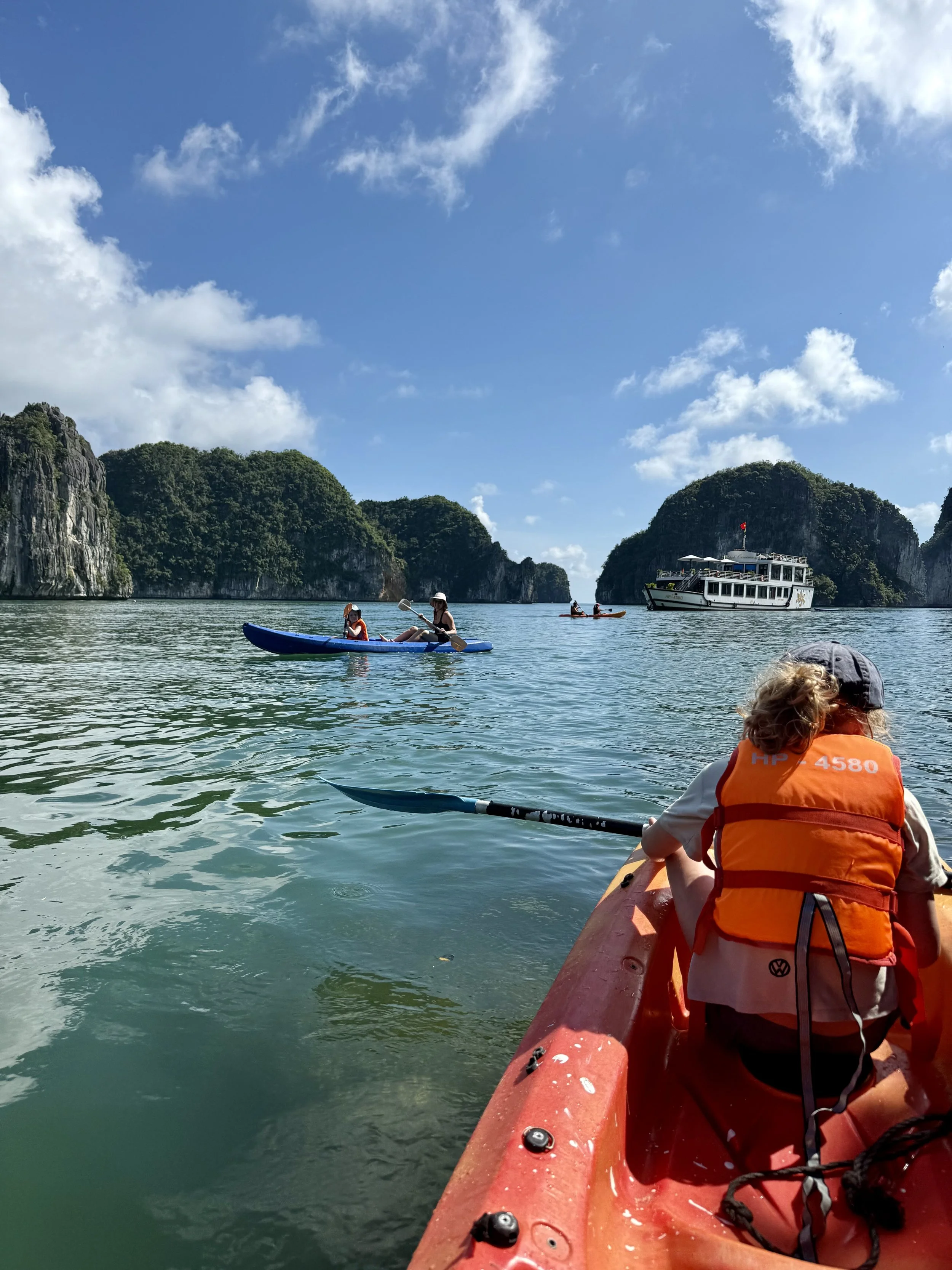 Cruise boat → transfer boat → day boat → transfer boat → Cát Bà Island → transfer boat → day boat → kayaking → day boat → transfer boat → cruise boat → transfer boat → Ha Long Bay port