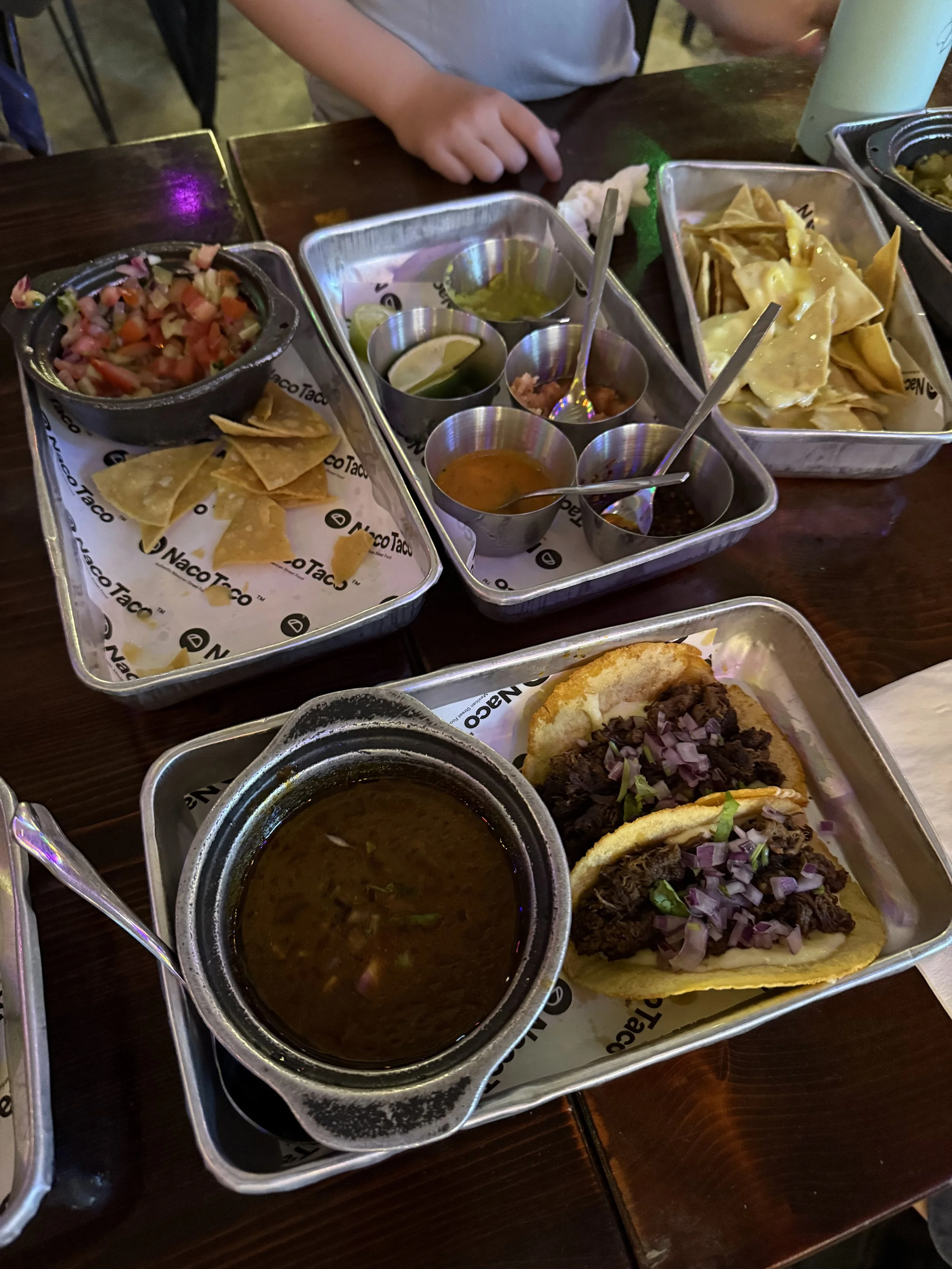 After our adventurous day of eating, we all were in the mood for some familiar food and for our family comfort comes in the form of tacos. We spent some time researching where to find the best tacos in Hanoi and landed at a spot nearly 30 minutes drive away. We weren’t keen to drive but knew it would be worth it for a comfort meal for our crew. At Naco Taco, Len ate two bowls of refried beans with chips and Ollie ate a bowl of pico de gallo, some nachos and 2 huge Birria tacos. The tacos were a ~6/10 but exactly what we needed.