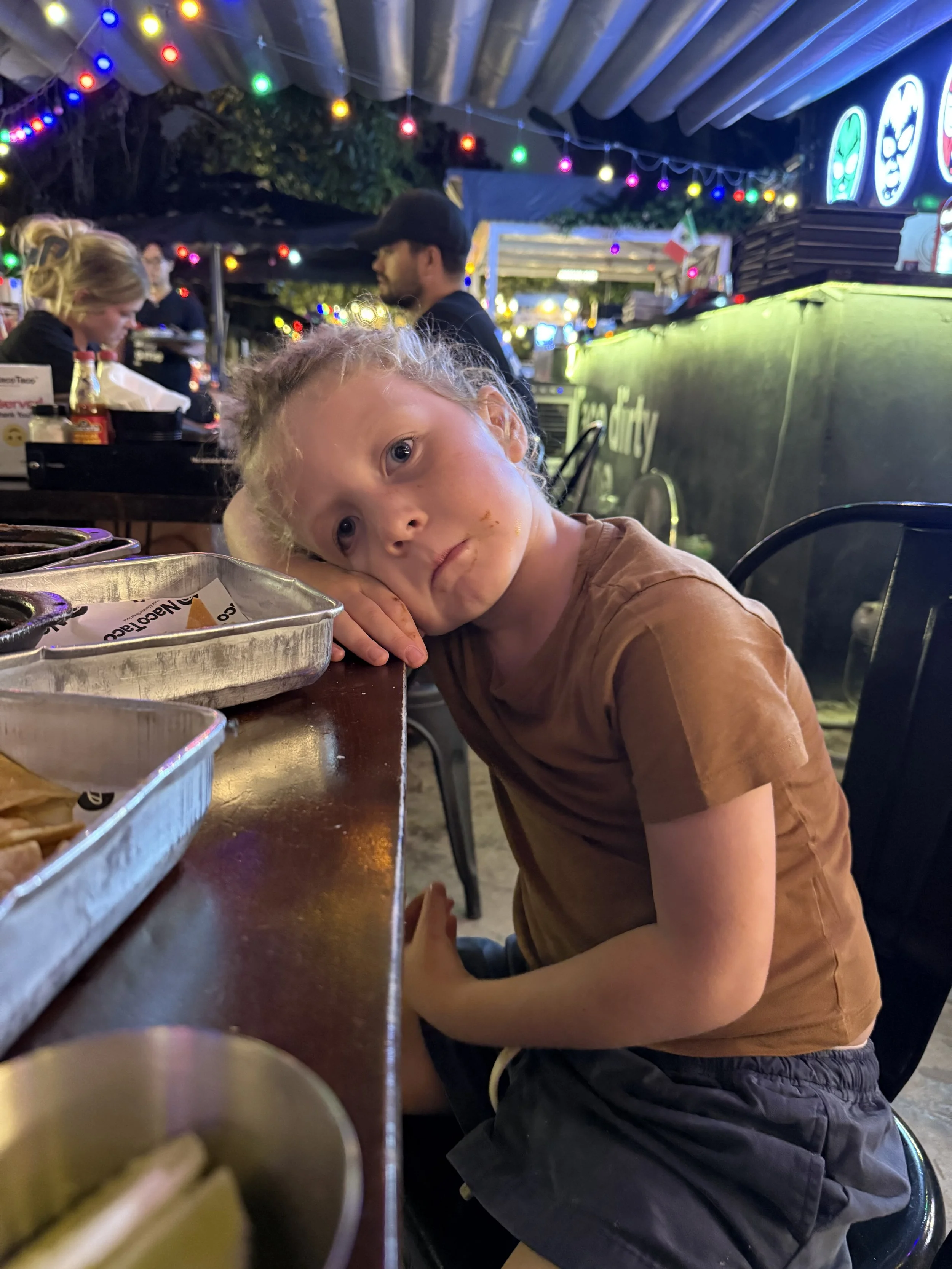 In the bathroom with Len at the Taco restaurant, we reminisced about the time he put a stack of paper towels in the toilet at his afterschool care (PlayDay) and flooded the bathroom. He then reminded me that Ollie also recently clogged a toilet. I asked him where and he goes, “You know the place where we drove up the mountain to the hotel and then me and him fought over being the leader of the hike.” My memory completely failed me but when we got back to the table and asked Kyle he goes, “Oh yeaaa, Longsheng, I remember having to go upstairs at the hotel to help him out.”
