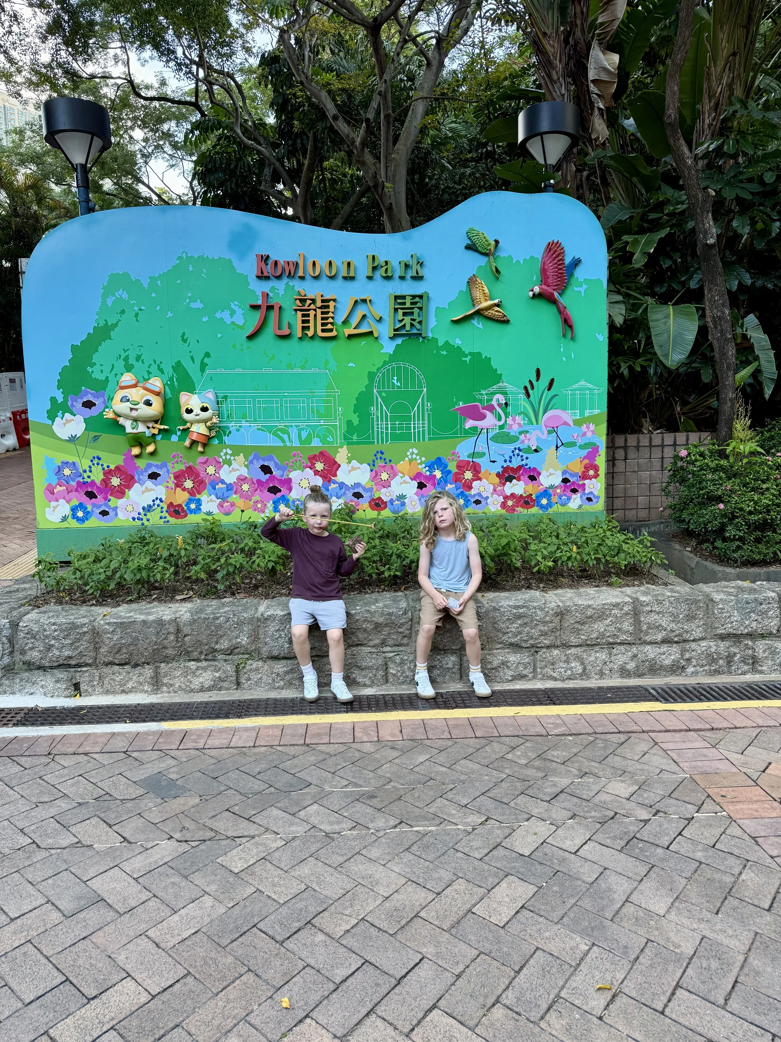 On the way home we stopped at the Bakehouse bakery again, I imagine we will stop daily, for an iced coffee and snacks for homeschool. Then we returned to the hotel briefly before heading out again. I was going to the gym and was going to show Kayleen and the boys where an entrance to the Hong Kong Zoological and Botanical Gardens was. They spent an hour in there and loved it. Lenny even said, “Mom thanks so much for bringing us here!!!”