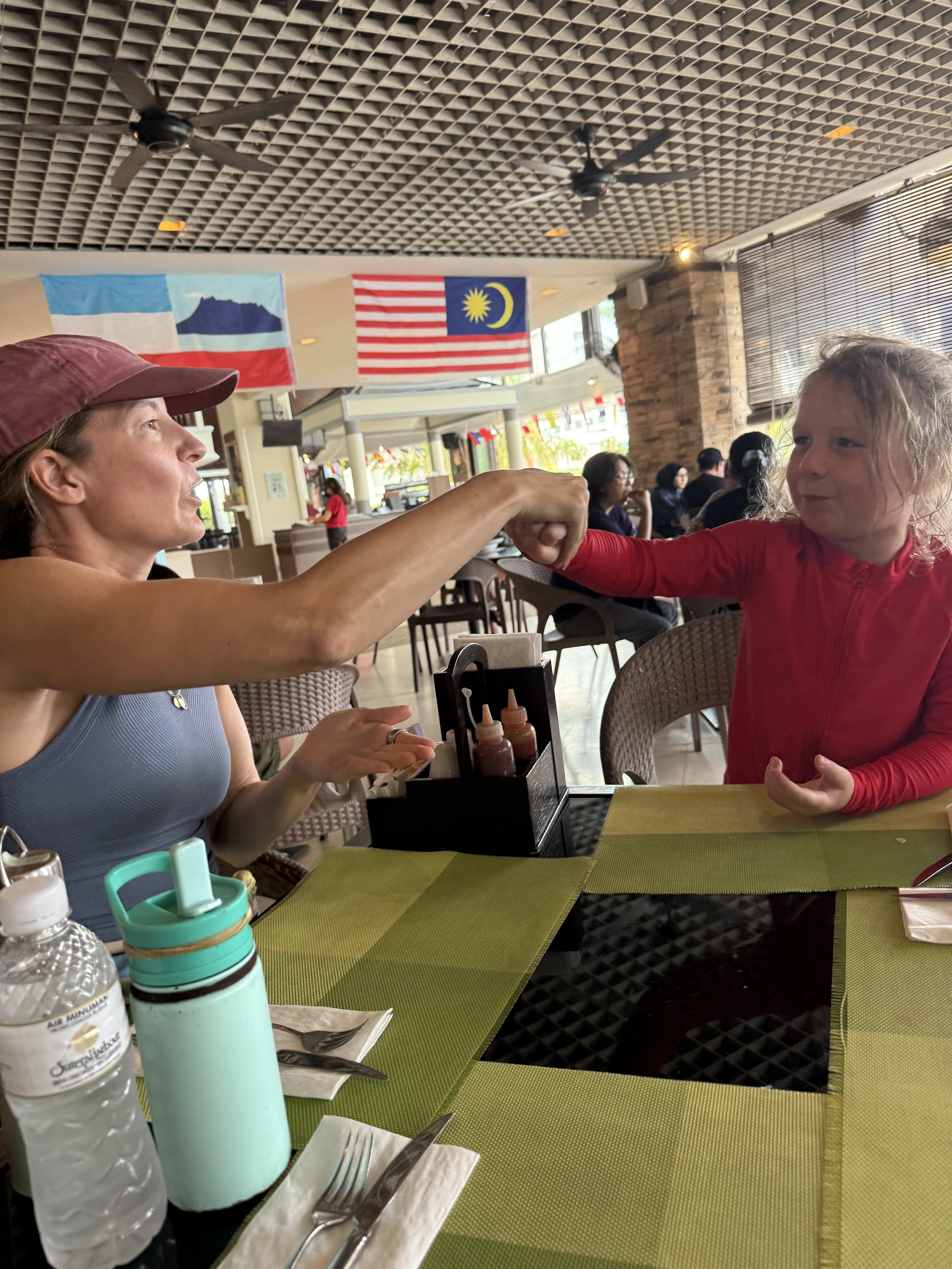 After breakfast it was time for homeschool, this should be a regular occurrence during our time in Malaysia. Lenny is reaching the end of iPad math lessons he can do on his own and now I need to spend more time monitoring each question to make sure he understands it. The lessons are well beyond PreK which is great. Ollie’s math level is also well above his reading level so we are planning to spend more time on words and reading with both of them.