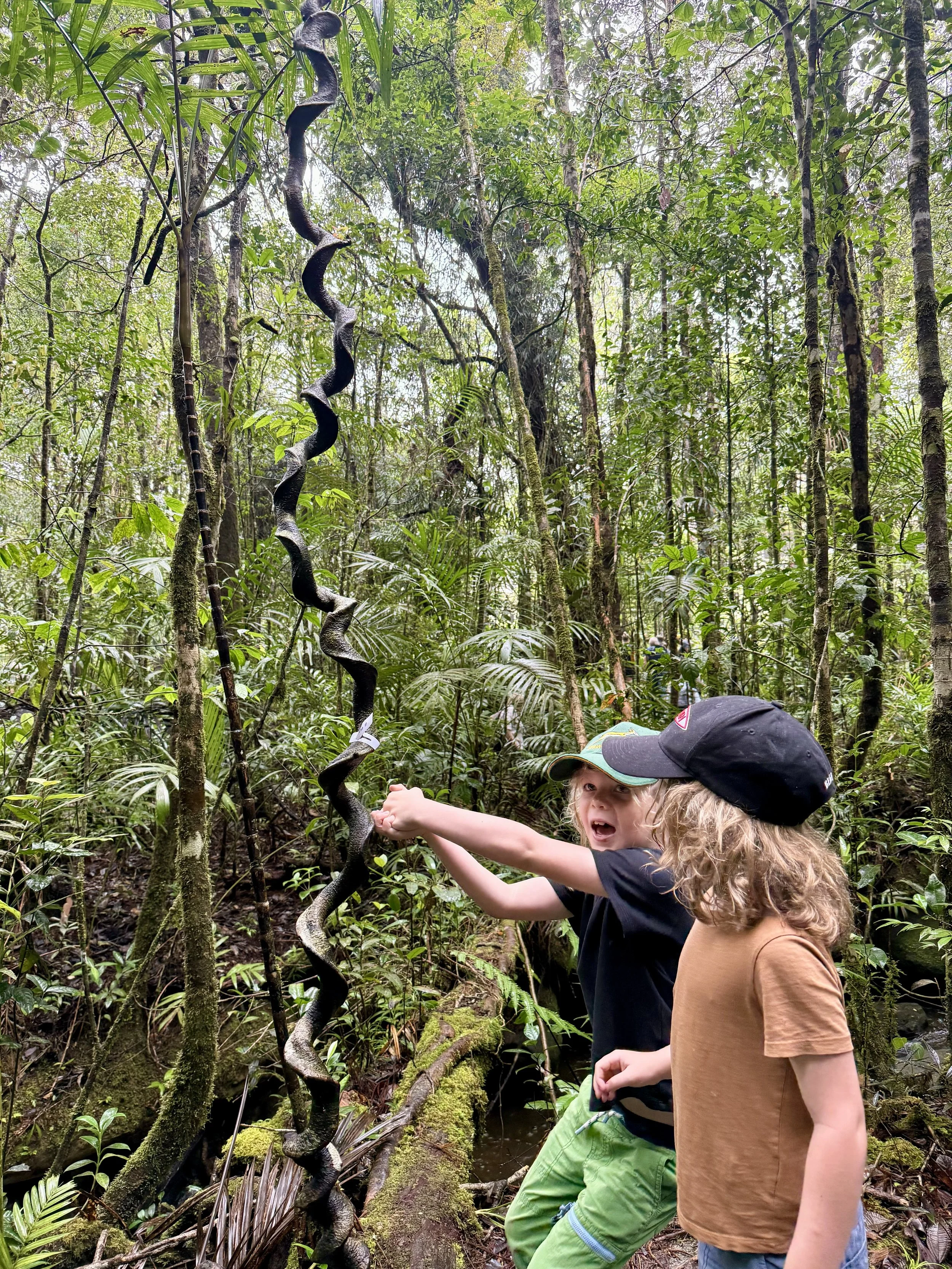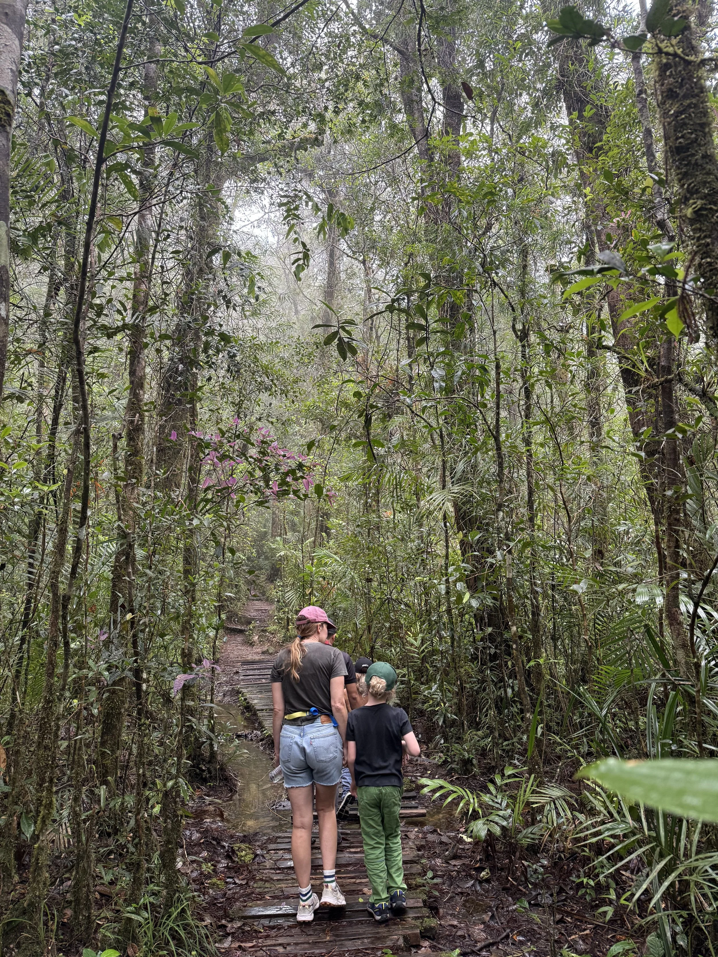 Next we walked through Kinabalu Park Botanical Garden. Kyle and I were keen to learn more about the huge variety of plants but this activity barely held the kids’ attention. They were most interested in trying to grab onto the crazy vines and less interested in the crazy variety of orchids that can be found in the rain forest. The tropical pitcher plants caught their attention when they learned they were actually carnivorous and ate bugs, though. Sadly the Poring Hot Spring Canopy Walk was closed so we weren’t able to go for a dip in the hot springs as originally planned.