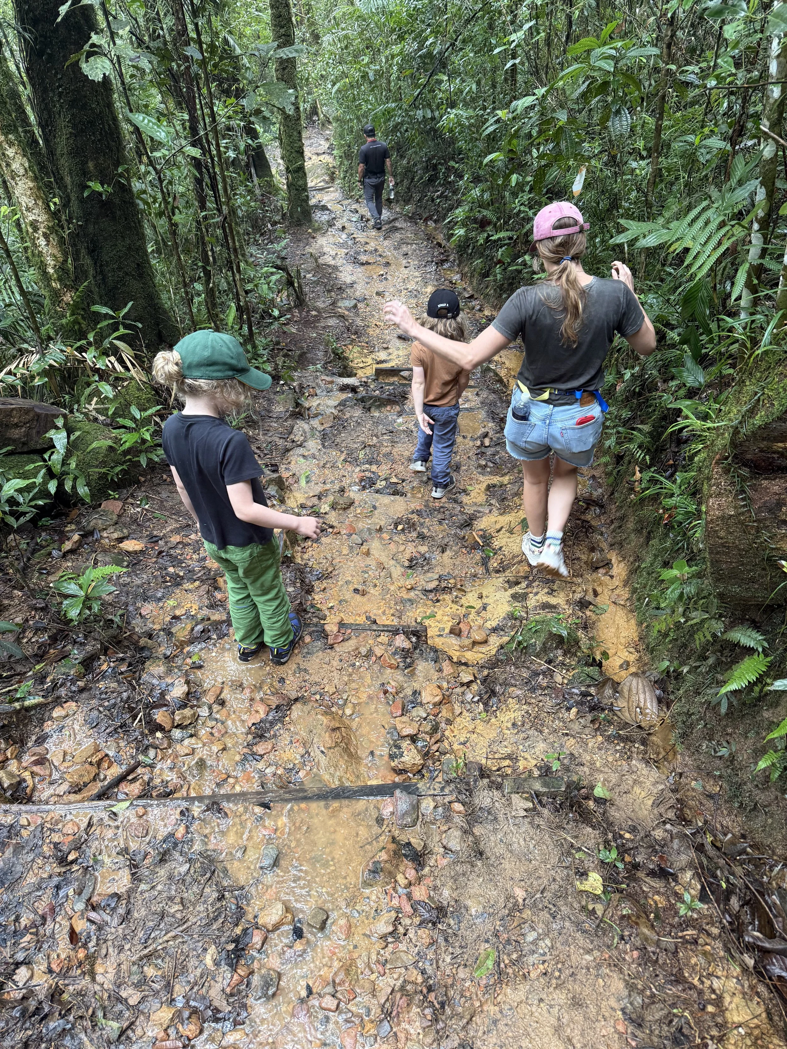 After more winding and uphill driving, we arrived at Mt. Kinabalu where we first followed the Silau-Silau Trail with Young as our guide. The trail was thankfully passable but very wet with small streams running through it at different points. We learned that we were technically in a rainforest but because of its high altitude, there were no mosquitos there! We saw a few wild chickens and neat bugs along the journey.
