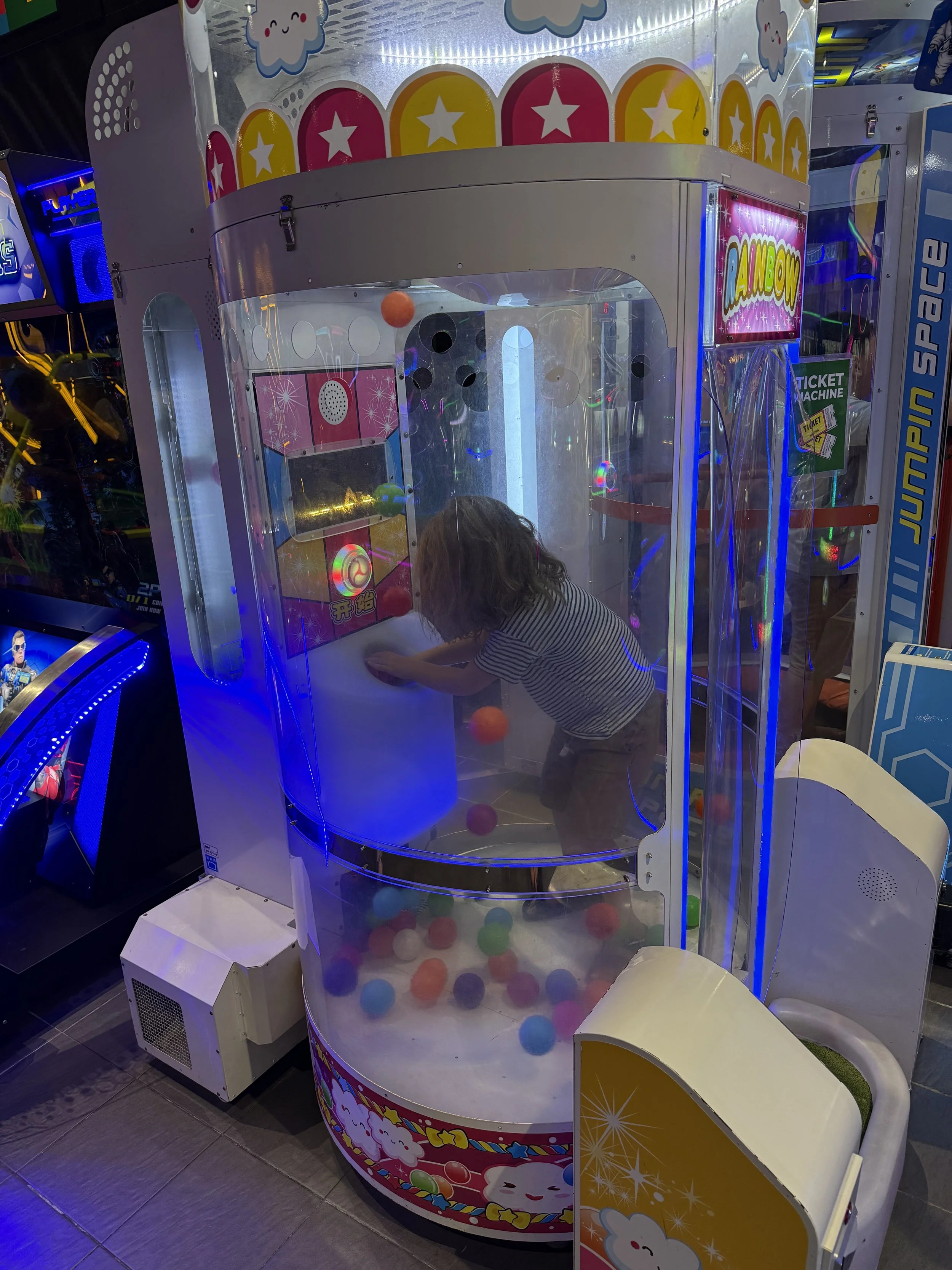 After a few unexpected sock and underwear replacement purchases we finally made it to the arcade. The boys each got 25 USD loaded on their cards to play with. That might get you 30 minutes at a Dave and Busters but here it might as well be an unlimited play. The games were a wide variety from a new Pokémon and Wicked Tuna game to old claw machines. Watching Lenny flail around in a machine where he was meant to catch the balls falling from the ceiling and put them in a hole was painful. Eventually the kids settled in to finish the funds on their cards playing an animal vs animal game that gave them character cards as they played. When that couldn’t consume the rest of their funds they got some candy and tickets to exchange for the smallest prize behind the counter. I have already forgotten exactly what it was…