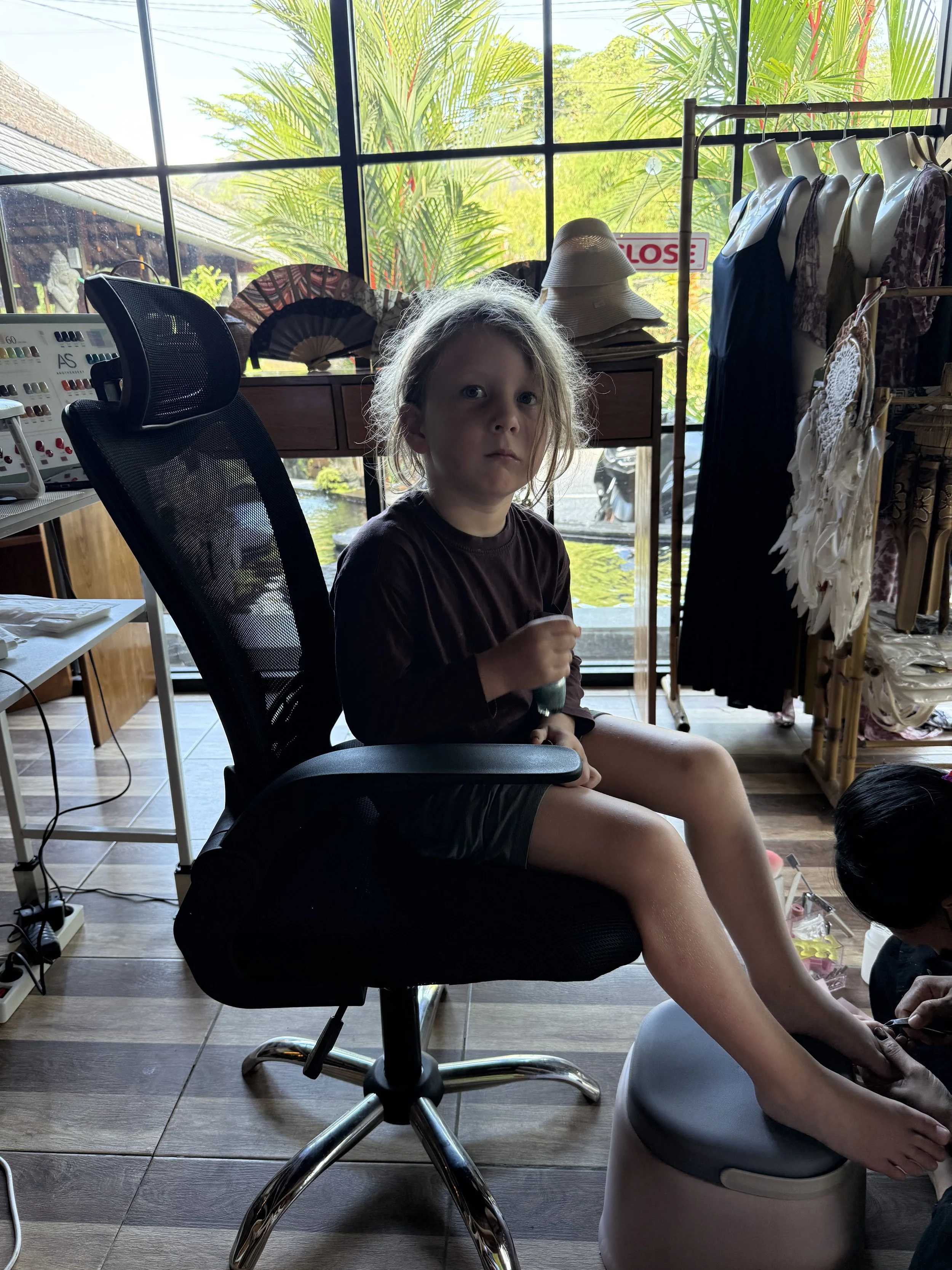 Our first full day in Bali after our late-night arrival. We had no idea what the hotel or surrounding area looked like since we arrived in the dark. The boys are so used to moving around and waking up in a new place with little idea of how they got there it does not bother them at all.