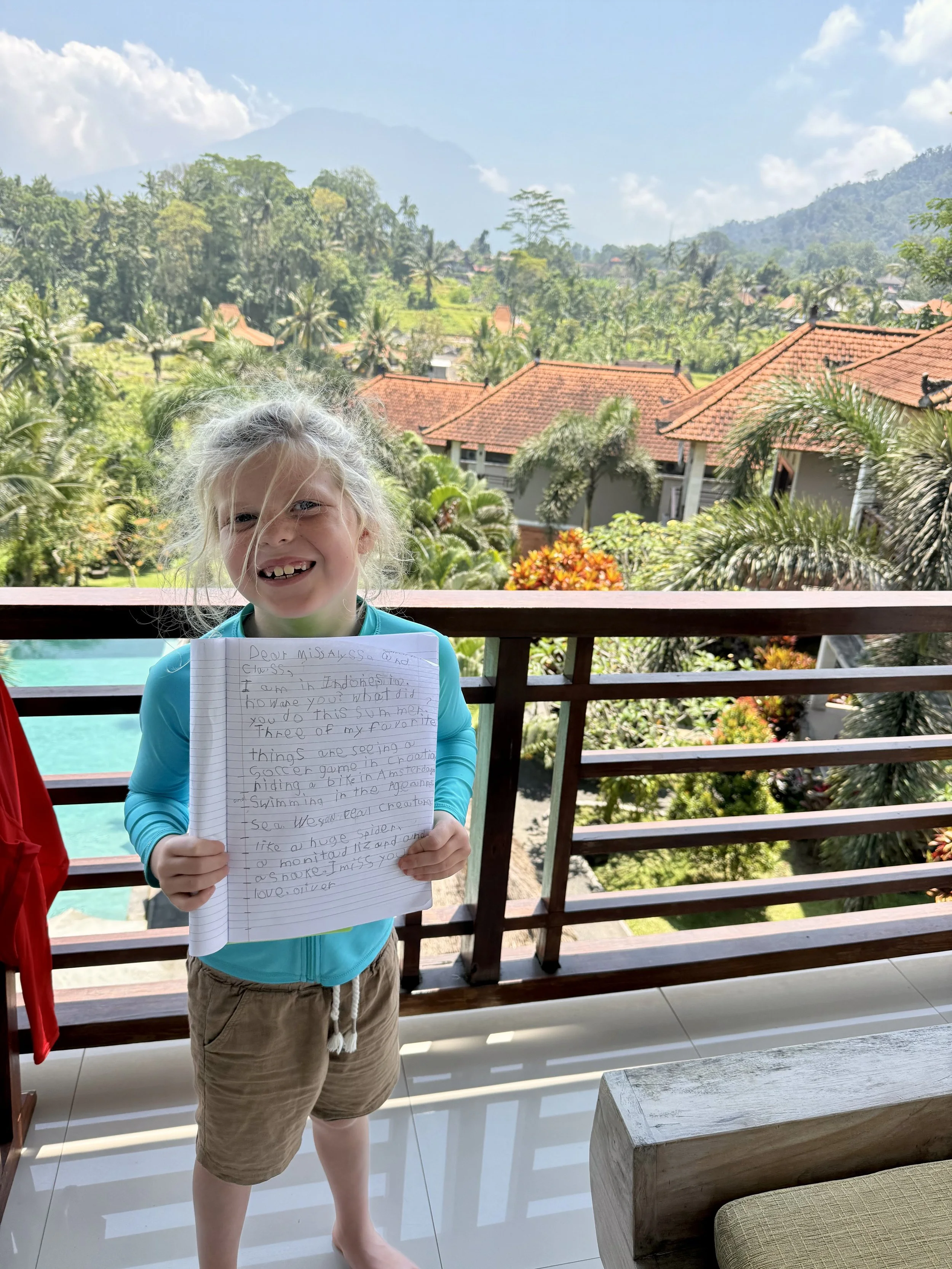 We grabbed our Scoopys once back at the hotel and headed back to the grocery to grab a few things. Once we got to the main road, we saw a man with a long stick whacking something in the middle of the road. As we got closer Kayleen and I realized it was a large snake, at least 6 feet. He must have chased it out of his shop and from the distance he was keeping I assume it was poisonous. Somehow the boys missed all of this! Ollie taking his navigation duties so seriously!!!