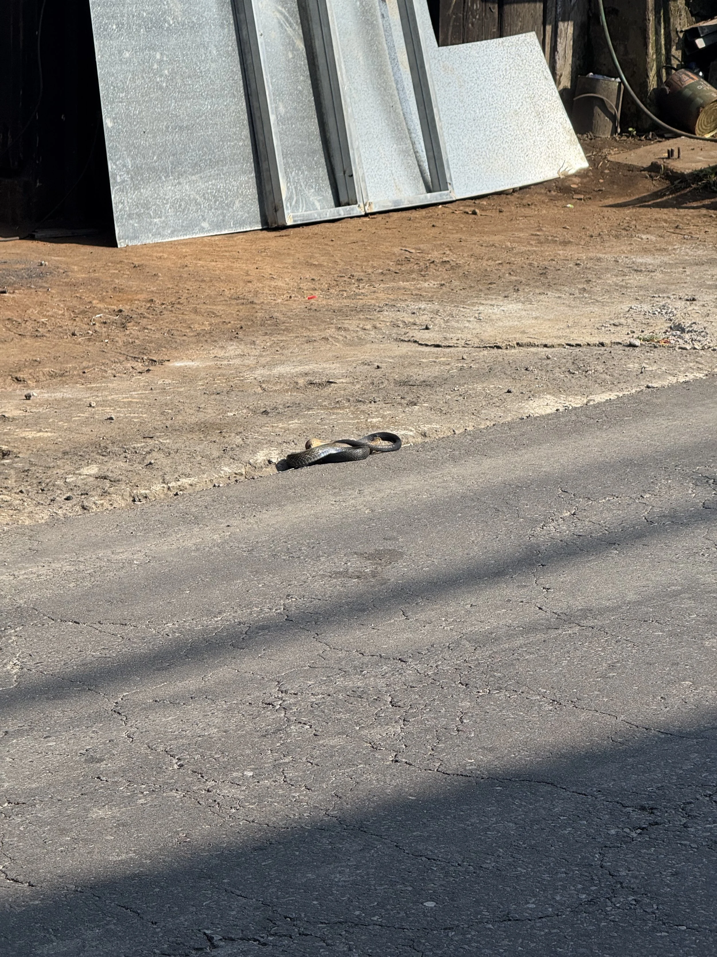 We pulled over and agreed to double back so they could see it and we could try to grab a photo. By the time we arrived back the snake was squirming on the side of the road in a ball and most of the commotion was over. We got a not-so-great picture but the memory of the whole event will last a lifetime.