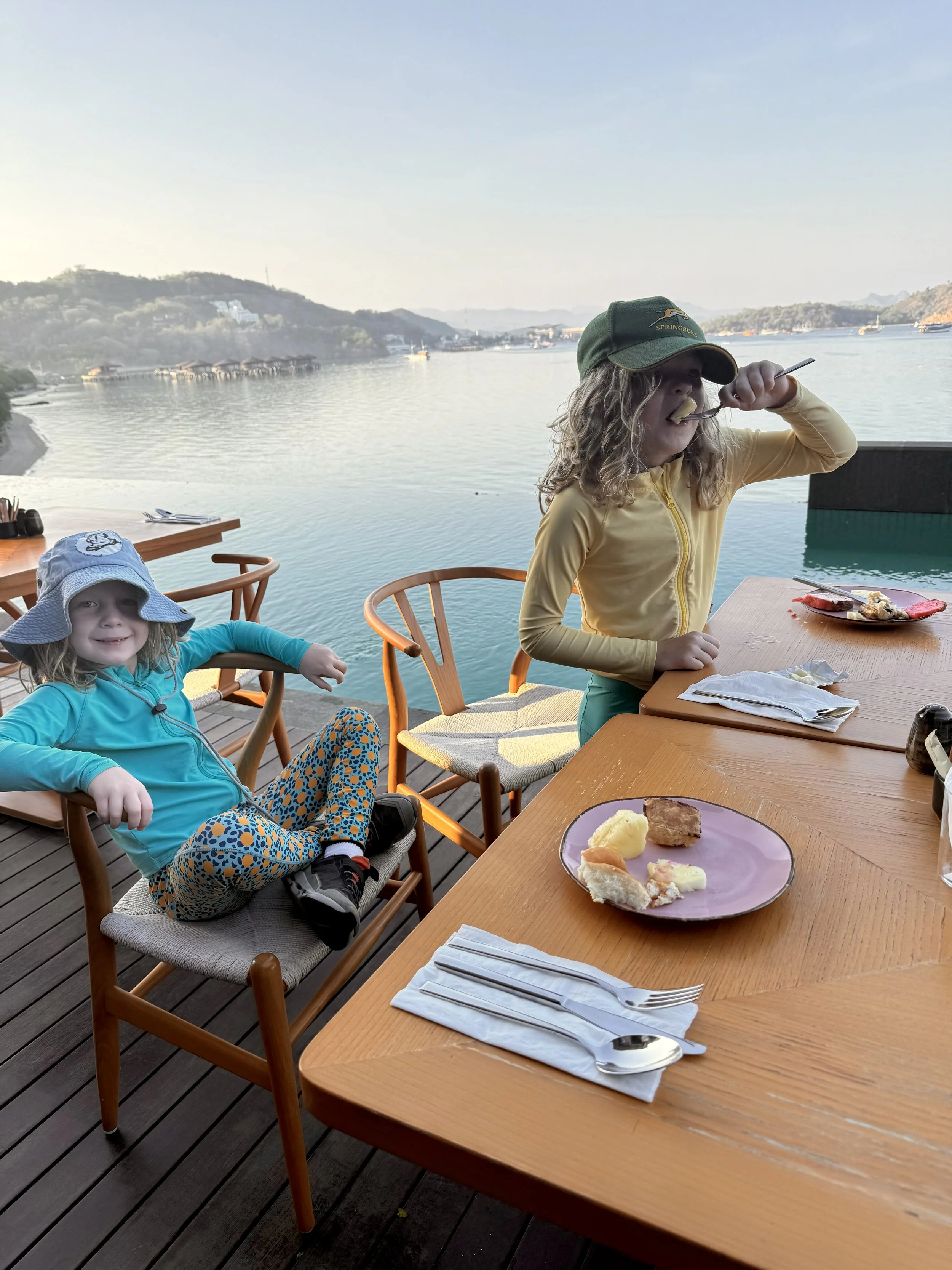 We were up super early to be at breakfast for 6am before the boat picked us up at 6:30am. The hotel has an incredible breakfast setup with so many beautiful pastries but the kids went straight for the donuts today.