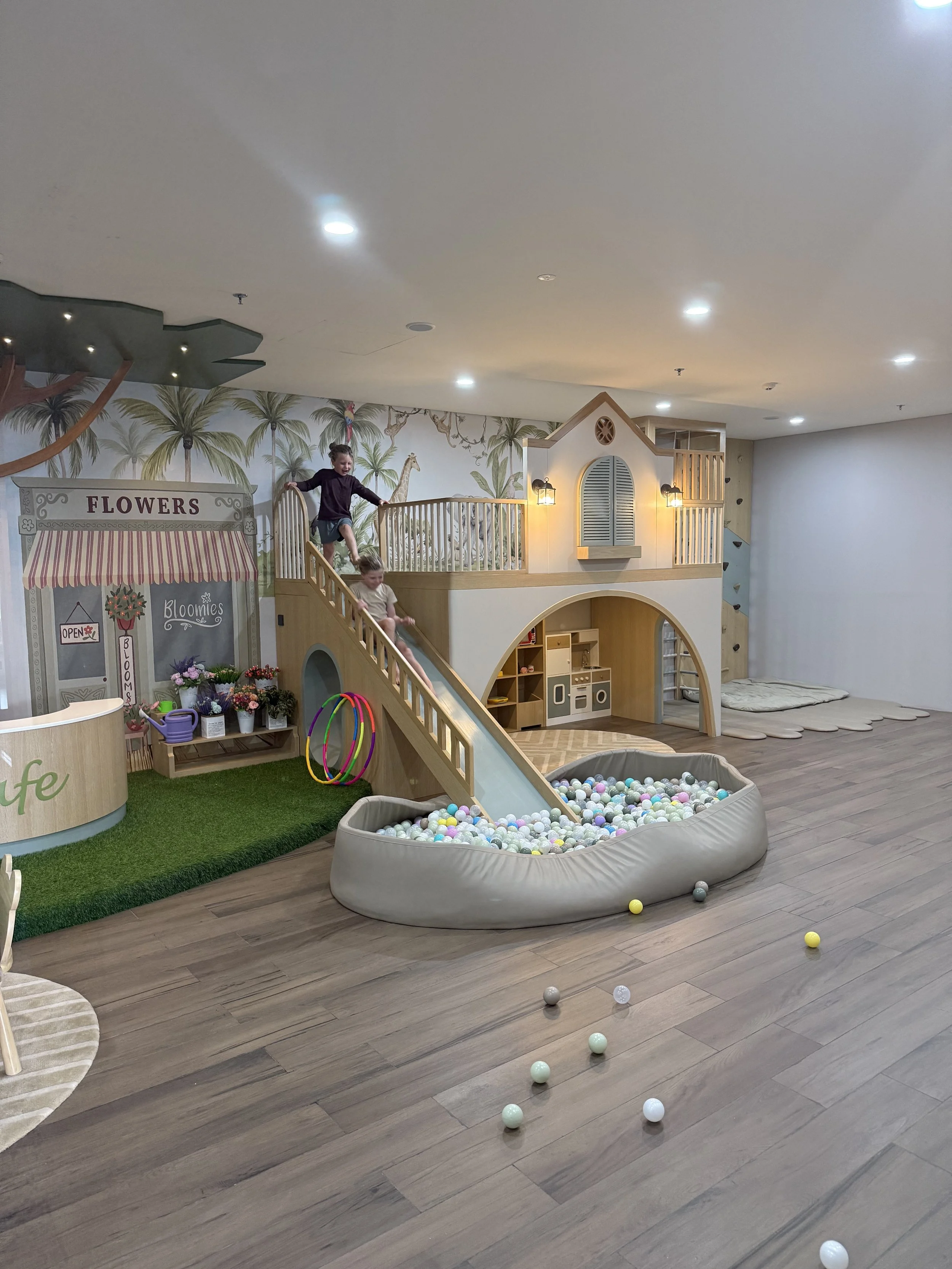 Once school was done, just before noon, we headed down to the kid’s club/pool/gym which are all conveniently located on the same floor. We dropped the boys and they were quick to start playing on the slide. Ollie was excited to climb the rock wall and play on the little foosball table while Lenny was happy to play with any toy he could find since he has been deprived for most of the trip.