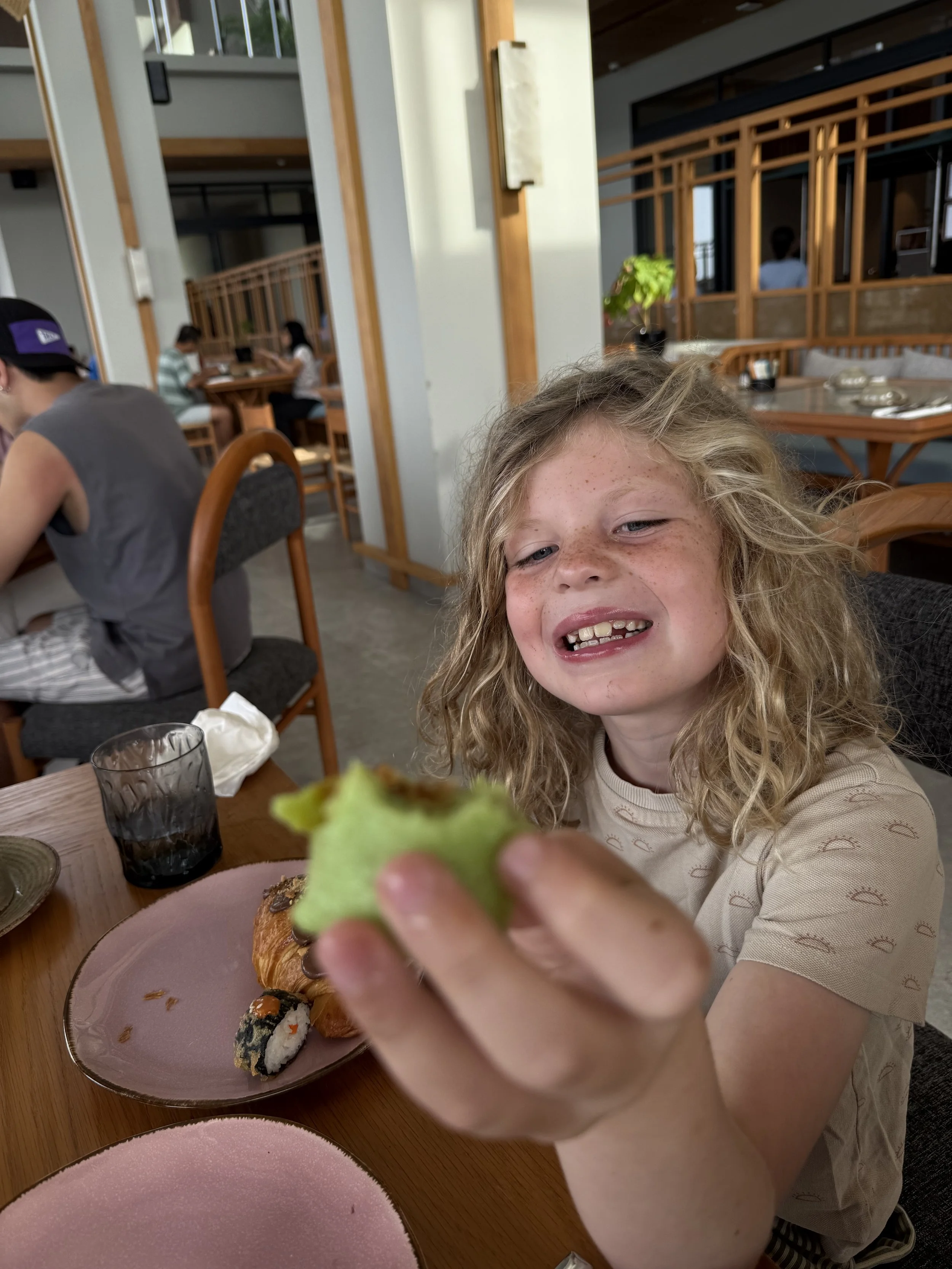Now that our big excursion day was done, we have two relaxed days at the hotel. That seems like the perfect number before we would get stir crazy. Without an excursion to rush to we got to take our time and enjoy the amazing hotel breakfast. It was so good with all different types of pastries, fruit, and eggs as the staples but it also had some Asian breakfast foods with chicken or beef that I enjoyed, as well as sushi for Ollie. All that and the coffee was actually good too! Towards the end of the meal the boys discovered the waffle station to get some Nutella waffles.