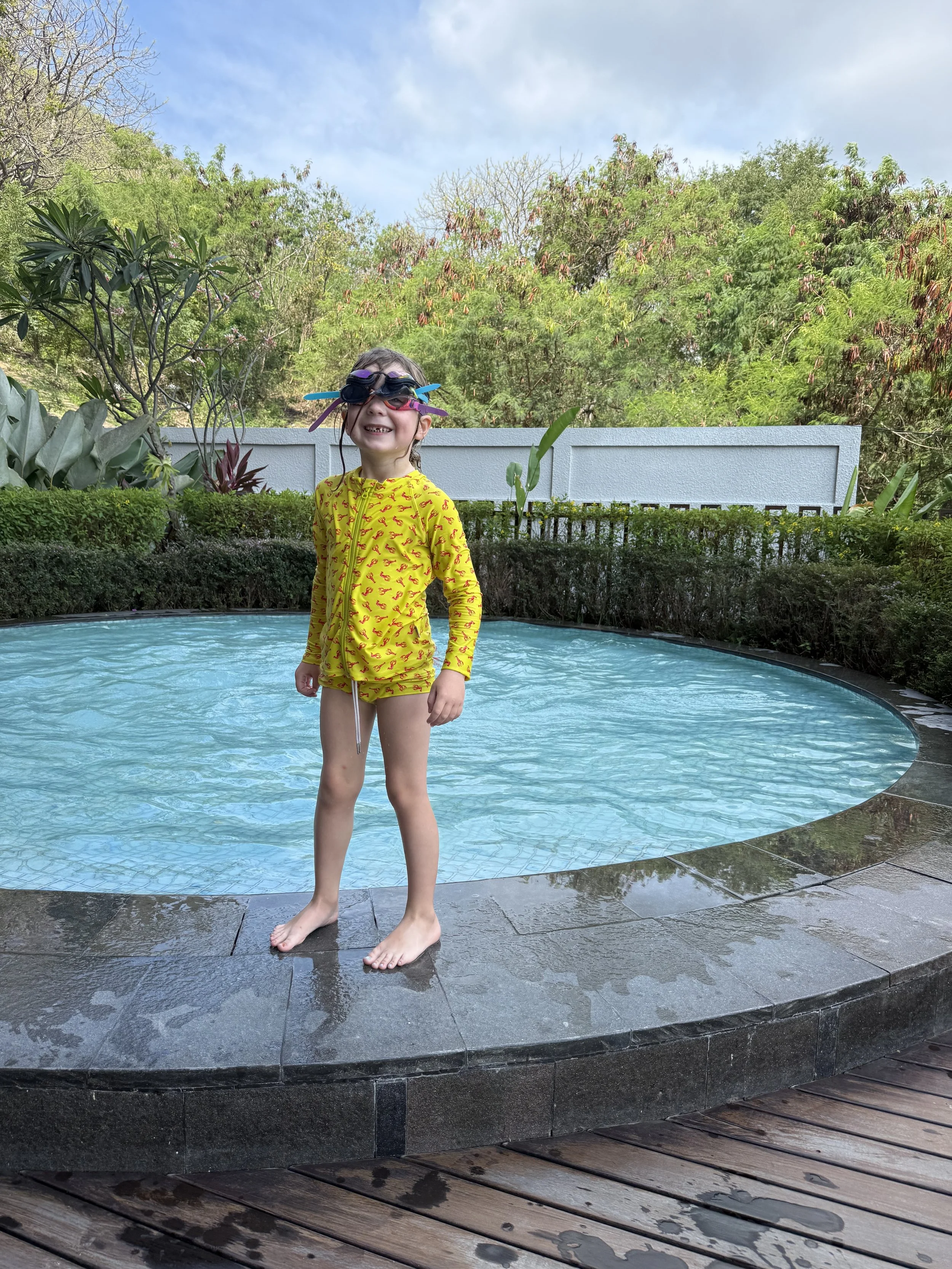 Len continues to impress us with his swimming and diving. Today we took to throwing silverware into the pool for him to dive and pick up— he loved this game. When he got out of the pool to lay down for a bit, he reclined all the way back, put his hands behind his head and goes, “Oh I could get used to this.”