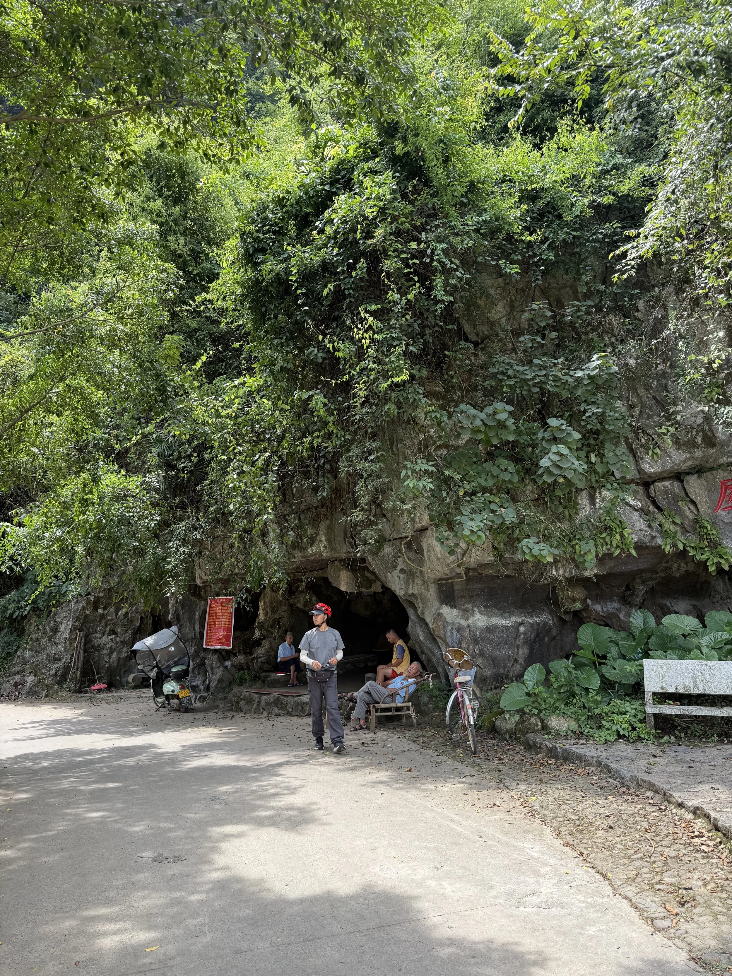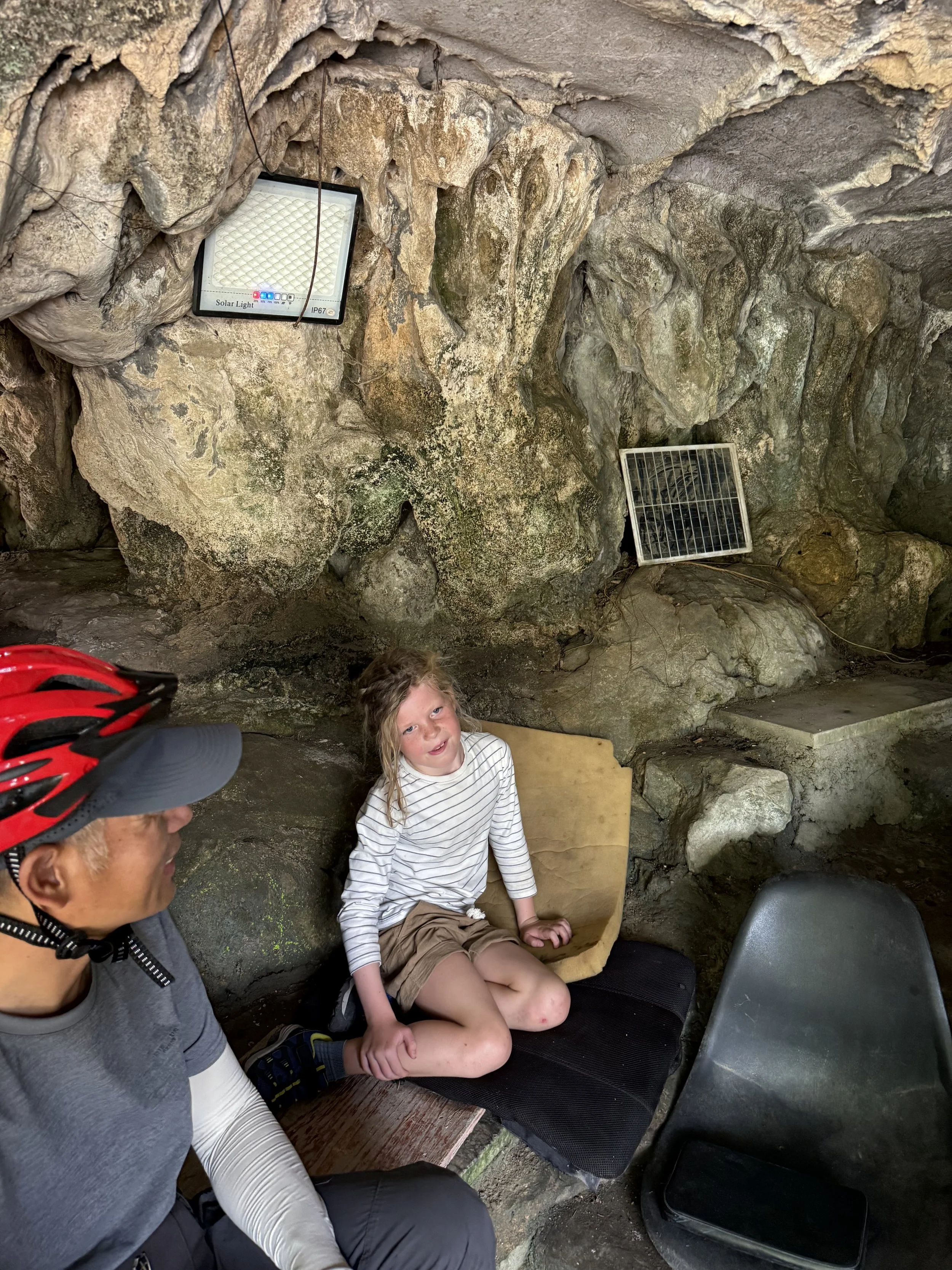 We rode up the river for 20 minutes then turned into a small village to take a break in a cave with some locals. The villagers were cooling off in the cave and had saved us spots to sit and even offered us their pipe. We declined the pipe but took them up on a brief cave hang. They told us that if we kept climbing into the narrow cave we would find some small lakes to further cool off but going any deeper felt insane. Len took to showing off his running jumps and everyone seemed to enjoy his energy.