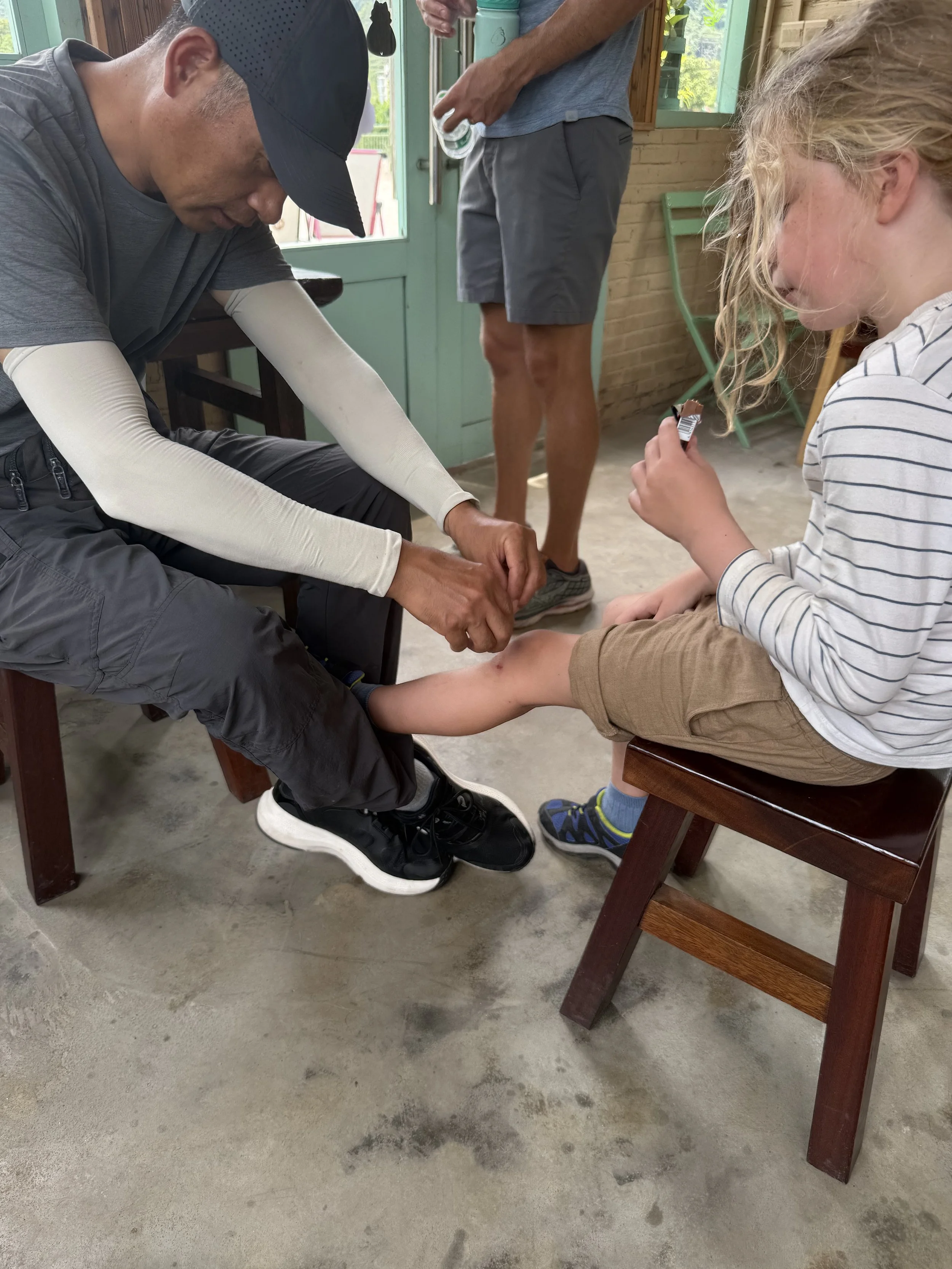 After the bike ride, Michael applied some Chinese medicinal powder to Ollie’s scrapes and we hydrated with watermelon juice, passion fruit juice and lemonade.