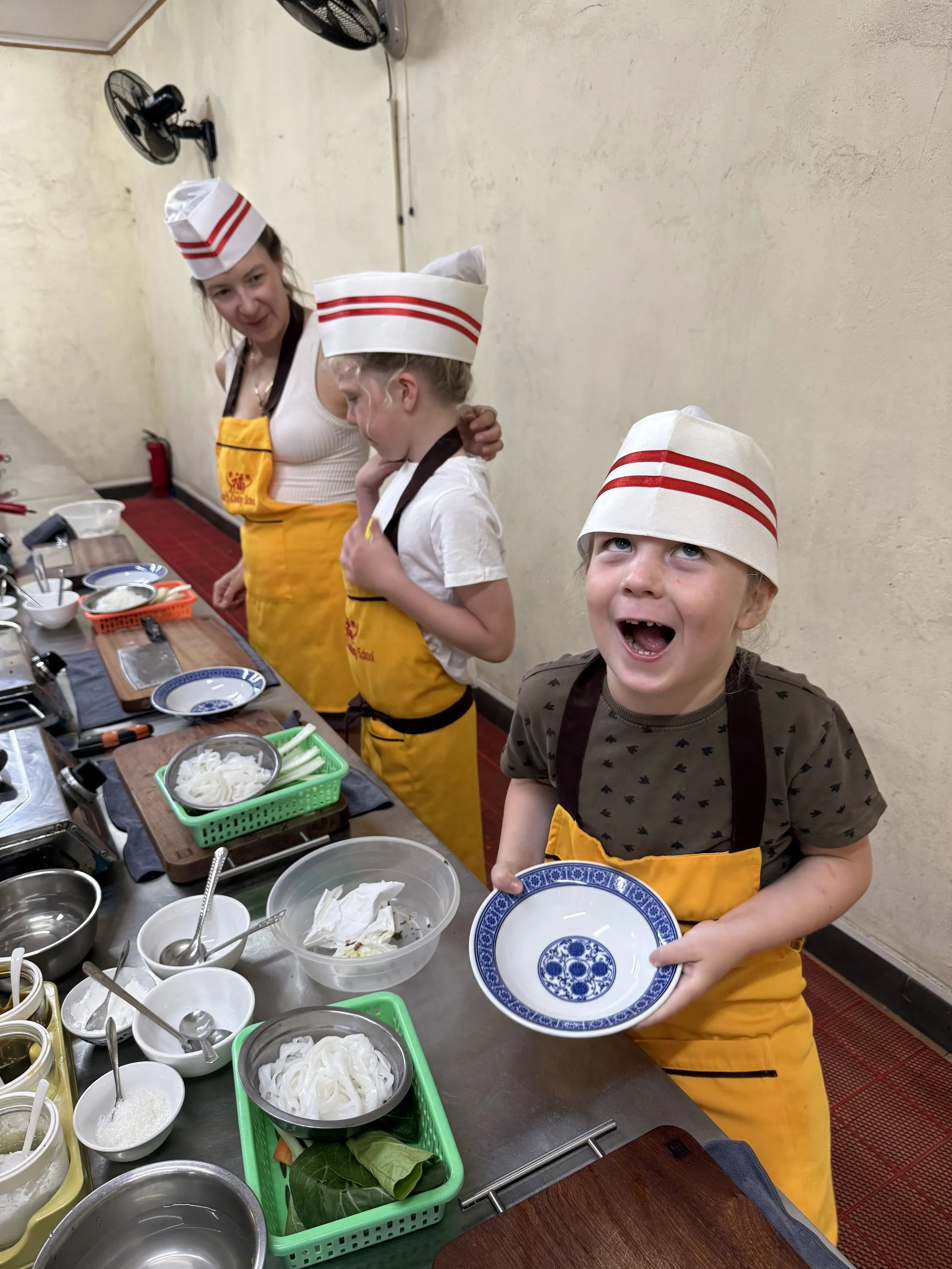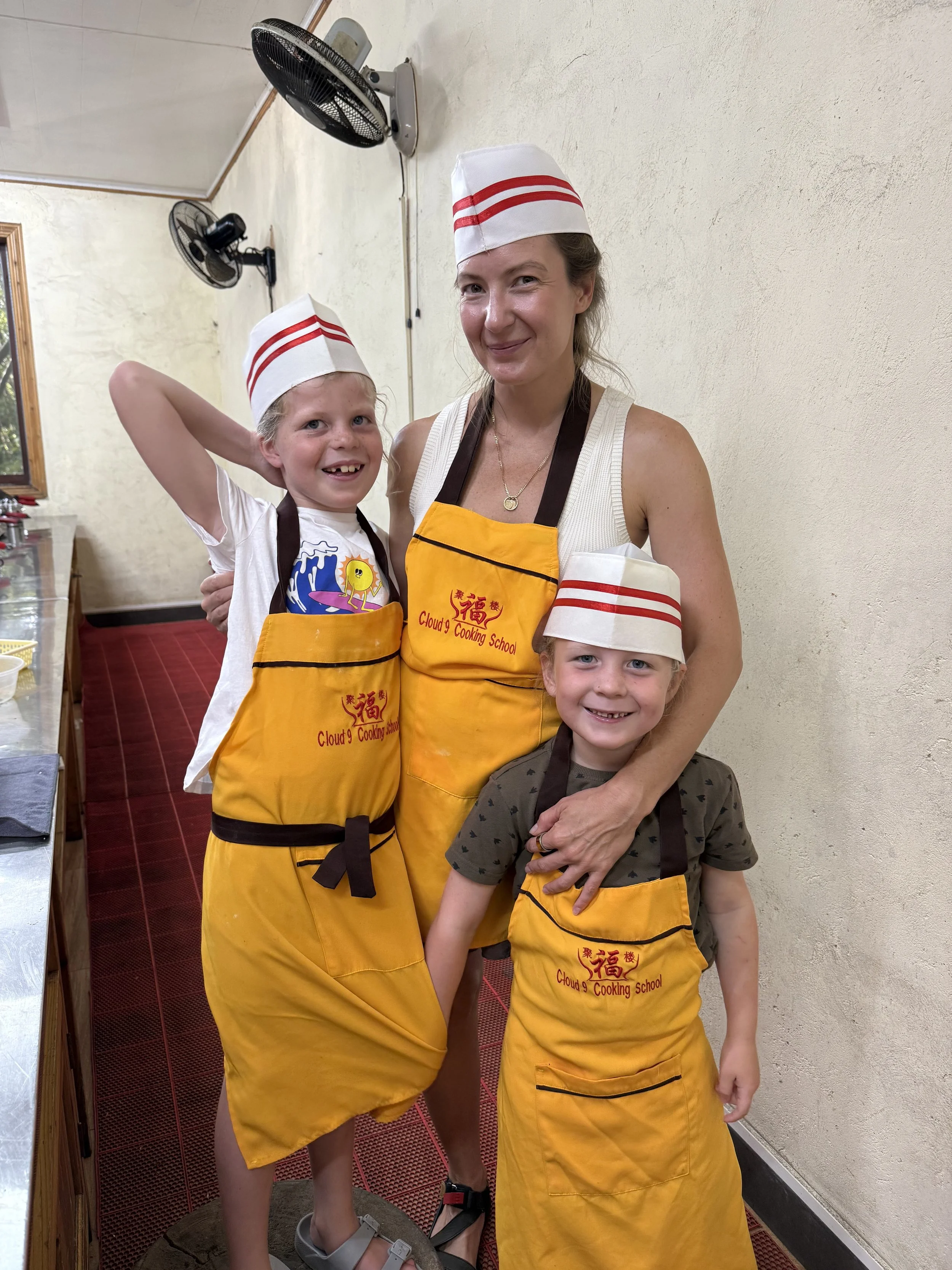 After a quick lunch back at our hotel, we were again picked up and taken to our next activity. En route to the cooking class, the boys were antsy and bickering constantly in the backseat.